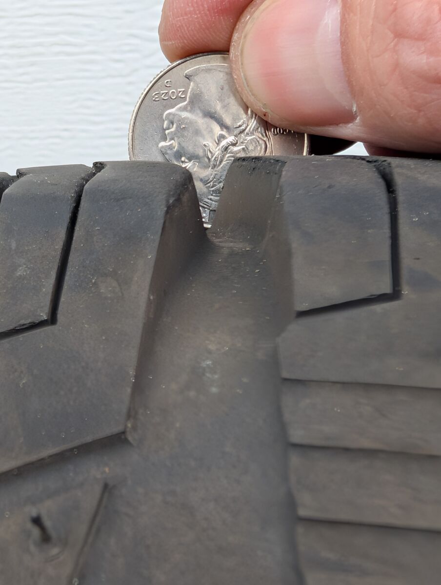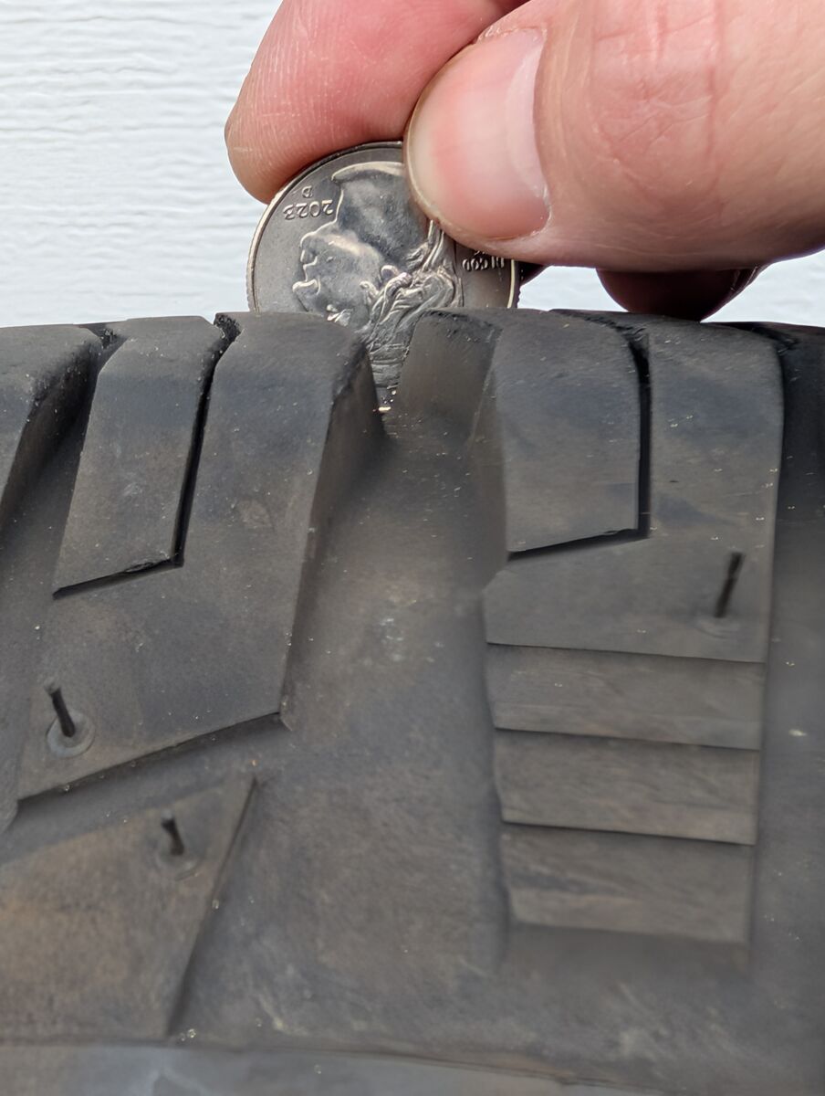 Tires were driven for only 6 weeks of light commuting before being removed and replaced with dedicated snow tires — very minimal wear.