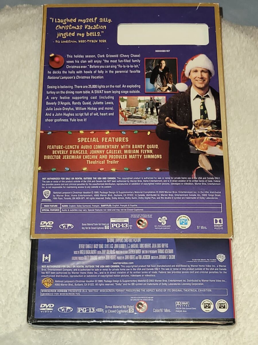 ZelleBrand new, unopened Special Edition DVD of National Lampoon’s Christmas Vacation. This is the 2020 version that comes with the original slipcover/box sleeve, which collectors prefer and which is harder to find in clean condition.