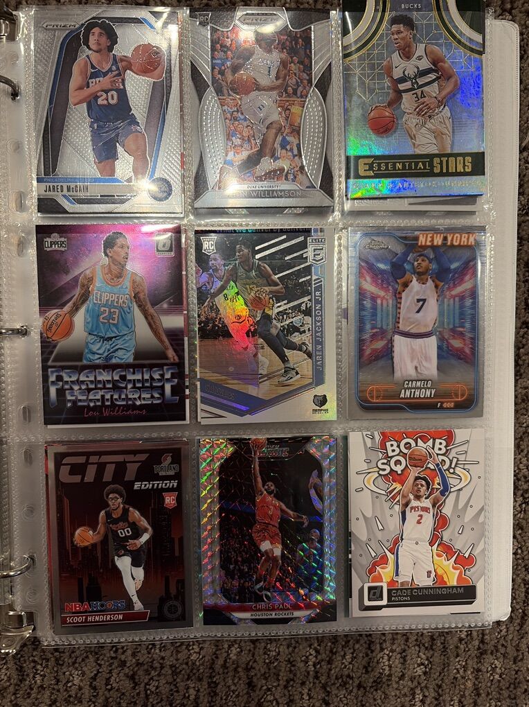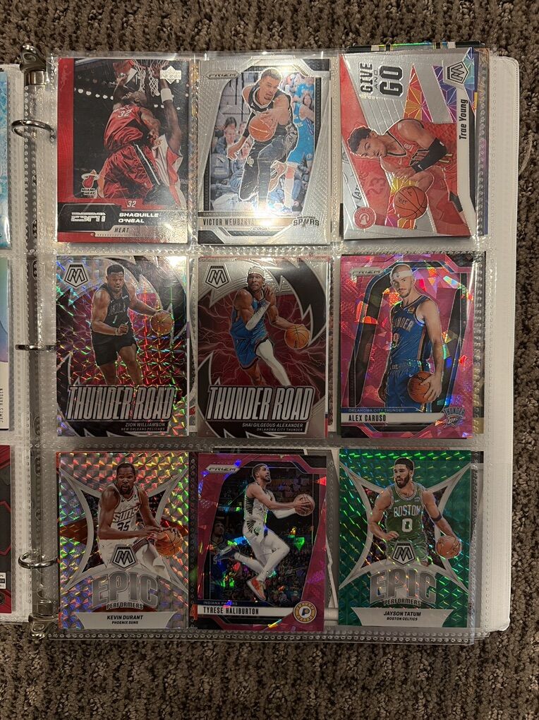 3 Michael Jordan‘s lots of rookie Zion Williamson‘s Victor Wembanyama Steve Nash Charles Barkley kawhii lenord ja morant lamelo ball Anthony Edward’s ja morant Tyrese Haliburton shai gilgeous Alexander and Shaquille O’Neal and a lot of more really good cards
