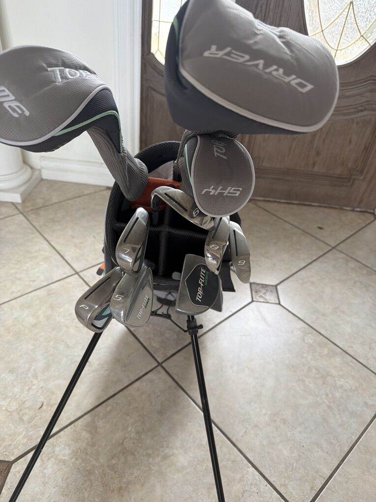 VenmoI think I only used these one or two times at the most. They look almost brand new and are complete 15 piece set when covers are included, there are 9 clubs plus the putter. They are the top flight gamer varsity Clubs and would be great for a someone 5 ft to 5. Ft 3”.