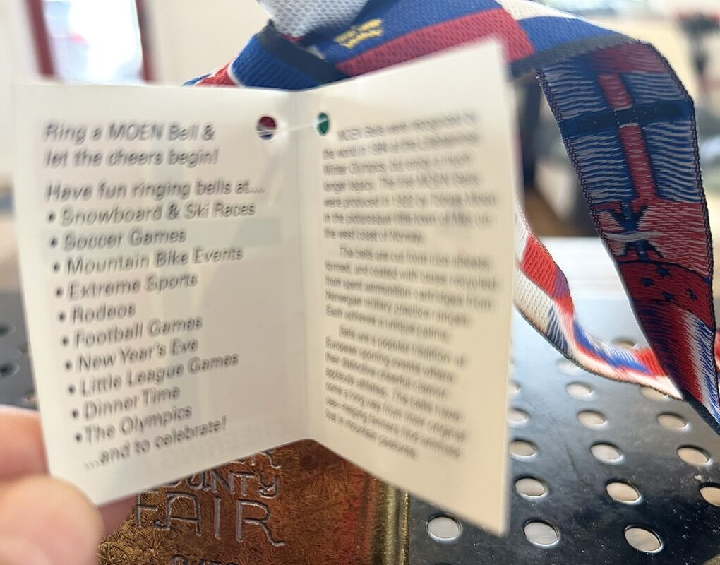 ZelleThe product is a limited edition 3-1/2 high MOEN Bell engraved cowbell, specifically designed to cheer on athletes. Made by MOEN Bells of Norway, the cowbell features a brass color and is inspired by Olympic events. Suitable for unisex adults, this Norwegian-made cowbell is a unique and collectible item for sports fans looking to add a special memento to their memorabilia collection.