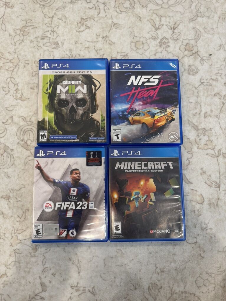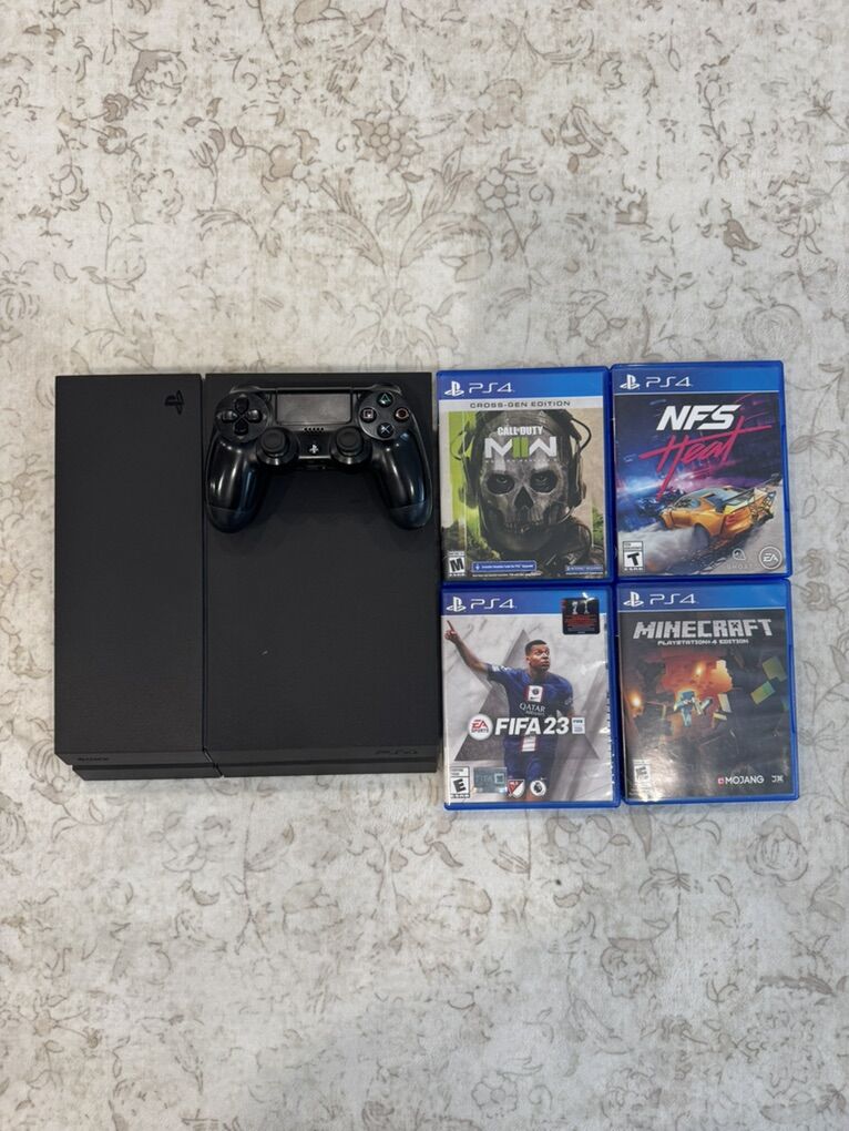 VenmoPlayStation 4 console. It’s in great condition I just don’t play it anymore. It comes with 1 remote, HDMI cord and power cord. As well as the 4 games shown which are: Need for speed Heat Call of Duty MW 2 FIFA 23 Minecraft