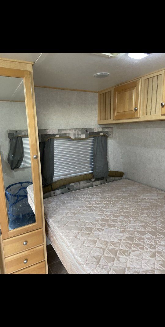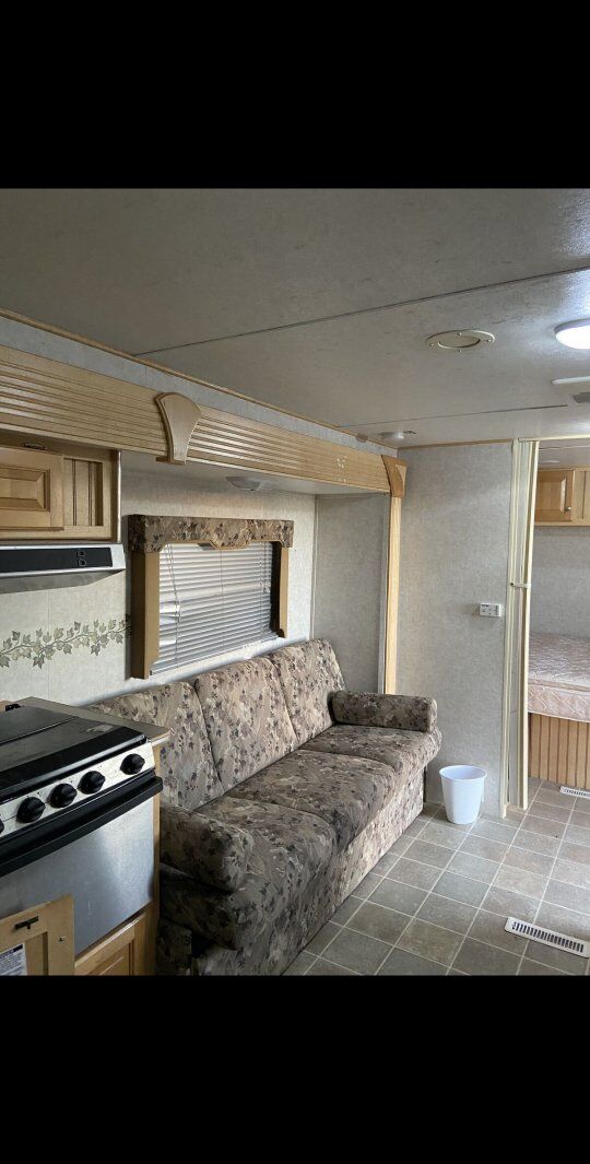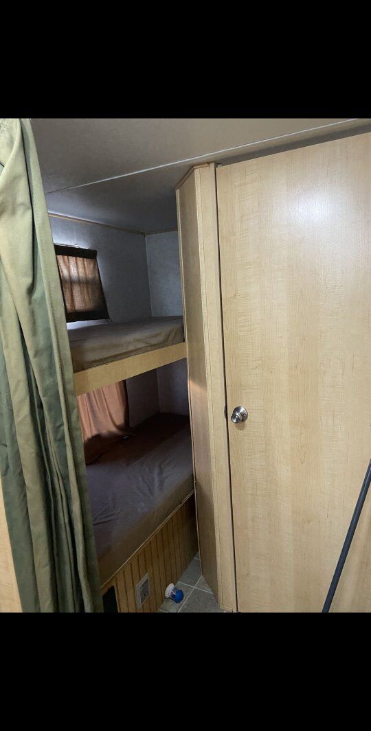 VenmoThis trailer has been great for our family and really no issues since we bought it back in 2018. It has more than enough storage and with the slide extended it has plenty of room for kids. Couch folds down into a bed as well as the table. Two bunks in the back and an RV queen in the front. Has brand new tires on it and upgraded LED lights inside. Water Heater, fridge, stove/oven all work great. A/C works when at hook ups or using a generator. Only cosmetic issues on the exterior. No issues inside. No water damage. Title in Hand. Serious inquires only please.