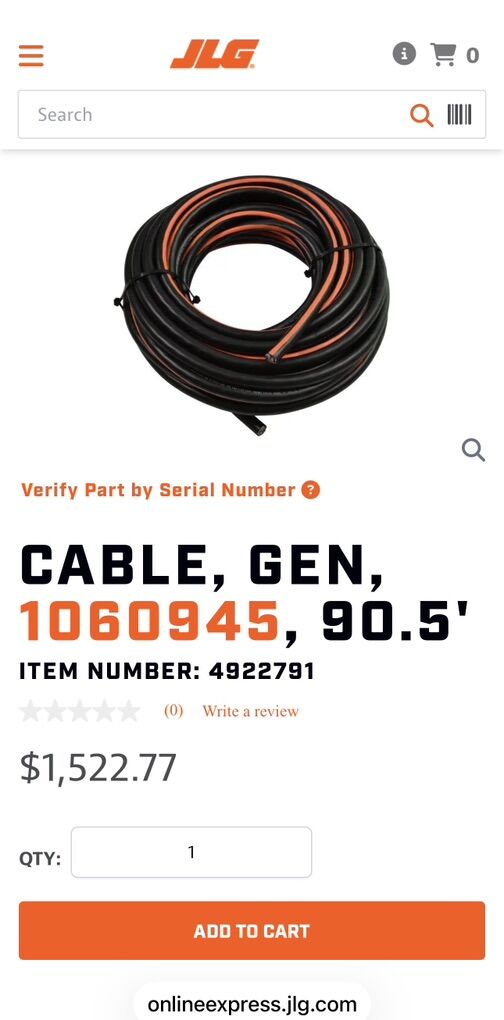 Description- 170’ Roll of genuine JLG 8AWG 5-conductor track flexing cable/flexible control cable in black/orange. See photos for more product information and specifications.