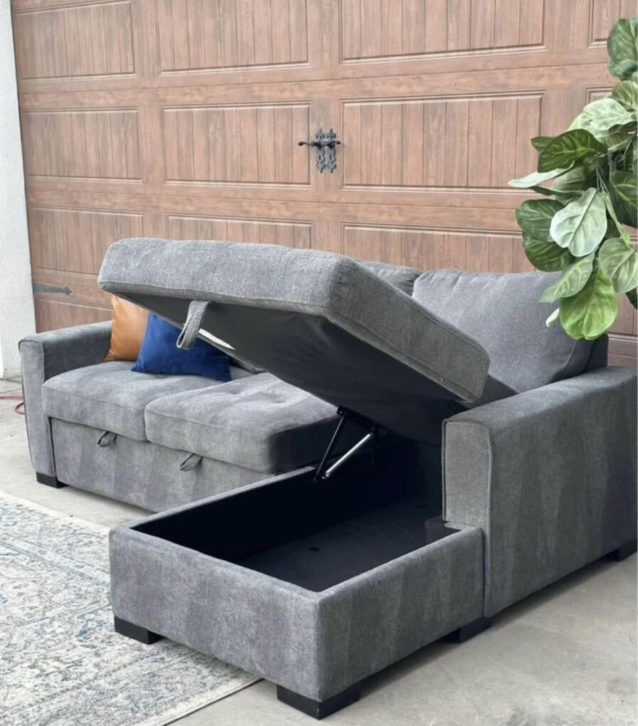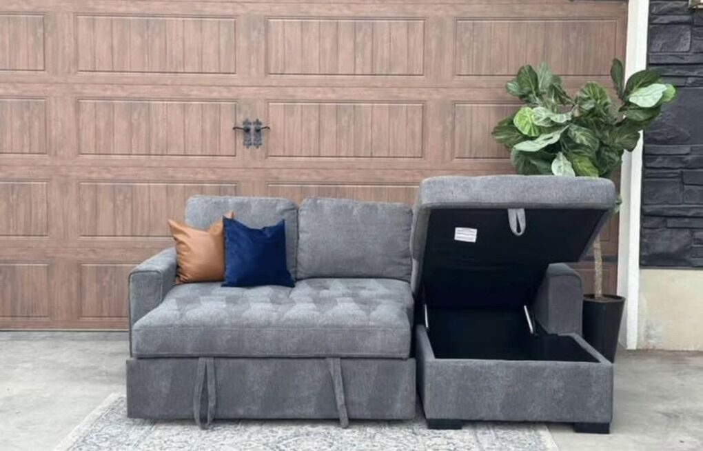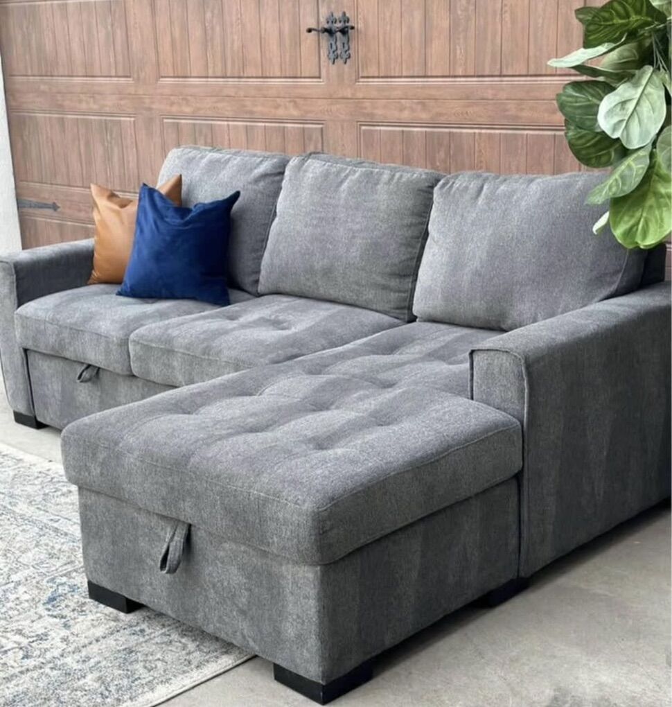 Hours: Monday-Friday: 12 pm-7 pm. Saturday: 10 am-6 pm Sunday: by appointment only Any other time not listed we do meet by appointment. The Kendale Fabric Sofa Chaise was designed with today’s consumer in mind, offering comfort and function in addition to style. The high-density foam cushions offer a comfortable seat, while drop-in pocket coils and sinuous springs prevent sagging. Easily accommodate guests with a pull-out bed and storage compartment for blankets and pillows. The storage and bed pulls can be easily tucked under the cushions when not in use. Kendale is upholstered in ATHENA™ performance fabric, that is stain-resistant, water repellent and easy to clean. While durable, the gray fabric is also soft to touch. Sleek track arms and solid wood block feet give Kendale a contemporary feel, while flange welt trim, button less tufting, and box edge cushions offer a tailored look.