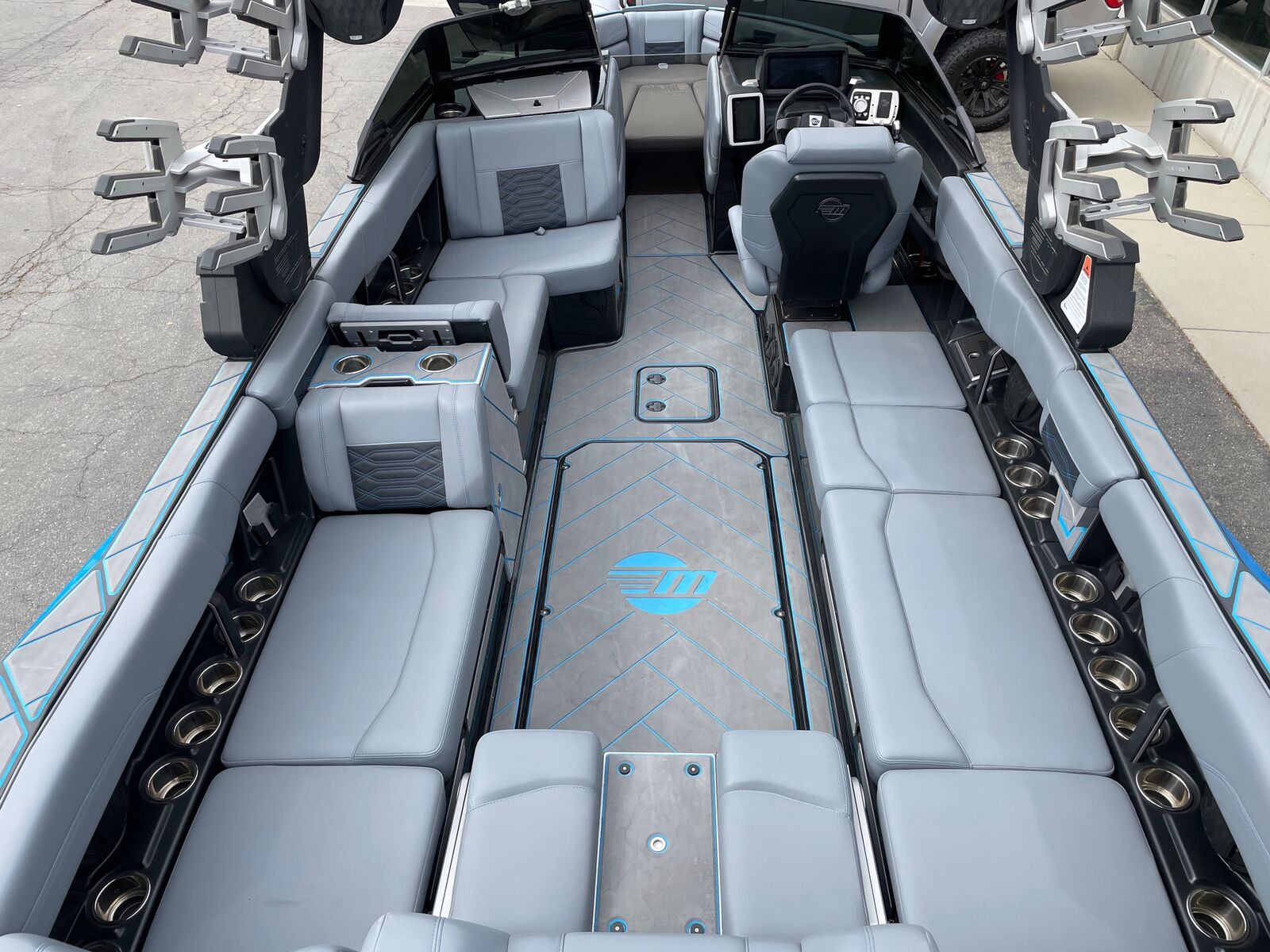 Sitting at 26 and a half feet long, the Malibu Wakesetter 26 LSV is the largest Malibu Boat ever built. With over 6,000 pounds of ballast and extra customization that comes with Surf Gate® and Power Wedge® III, the 26 LSV leaves plenty of room to play with a big pocket and perfect wave on both sides. Home to all the luxurious amenities you need for endless summer lake days, the 26 LSV boasts plush seating and storage for up to 18 people. Packed with the latest features to maximize your spacious interior — including the MaxPivot Seat™ and the port side cooler storage locker — the 26 LSV is just begging to be lounged in after a refreshing afternoon swim at the cove or sunset cruise to dinner. So, if you’re looking for cutting-edge innovations, the most spacious interior, and unbeatable wave performance behind the boat, the 26 LSV offers an on-the-water experience you truly can’t get anywhere else — let’s get on the water.