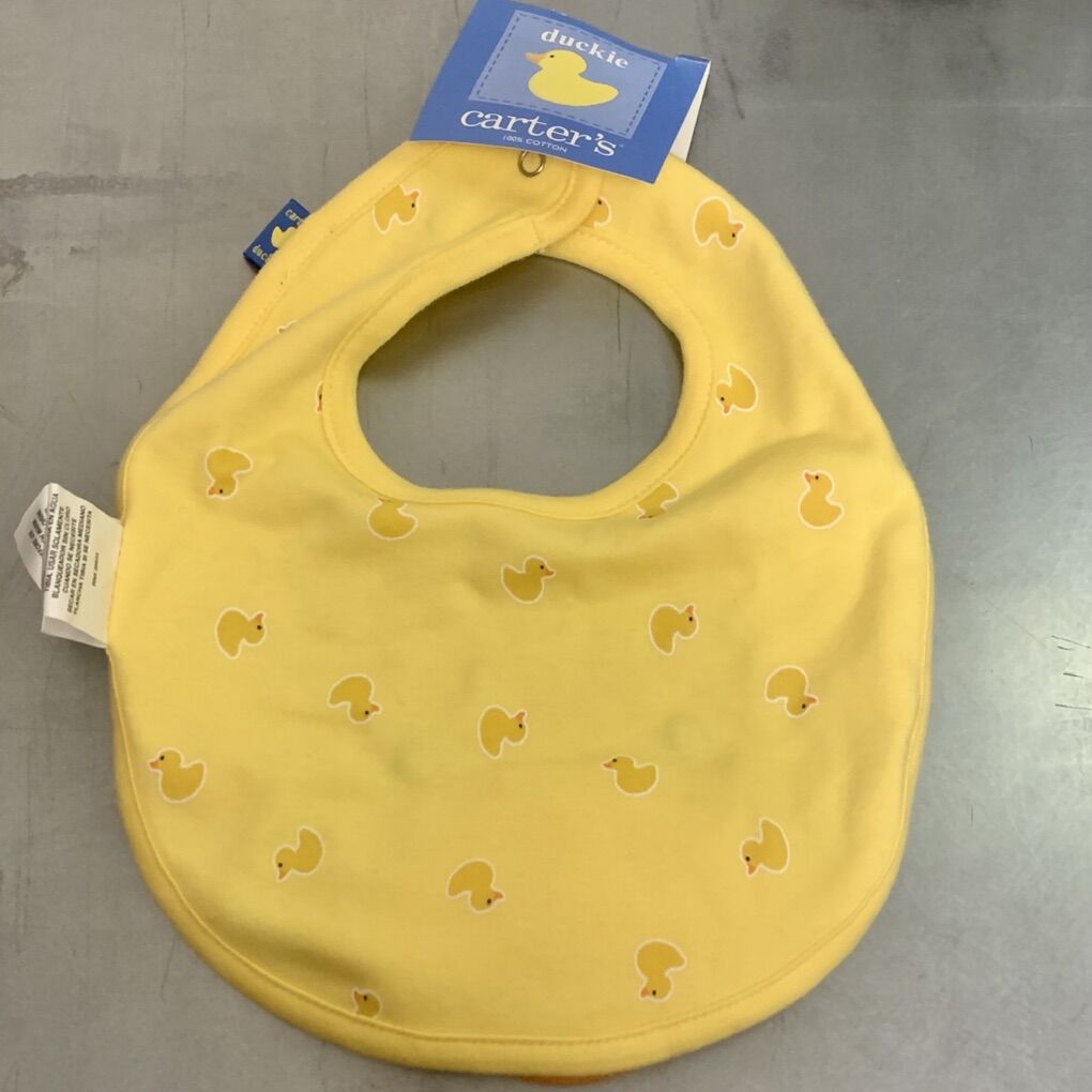 VenmoThis is a Vintage new with tags Carter's Squeak Duck Little Duckie Baby Bib. This vintage-style bib features a bright yellow color and a large orange duck beak. With a “squeaker” inside of the duck beak. It belongs to the duckie collection.It is 100% cotton, one size, and machine washable.