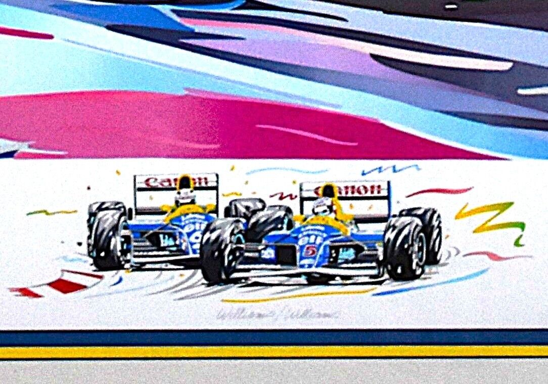 Randy Owens signed and numbered serigraph of Mansel and Patrese racing in 1994 Formula One race. Signed by artist and numbered - 50/450.