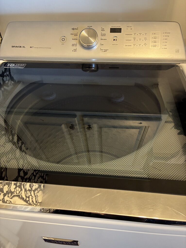 Large capacity Maytag Bravos XL top-load washer. Washer turns on but needs repair. We decided to buy a new one instead of have it fixed.