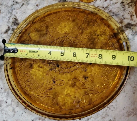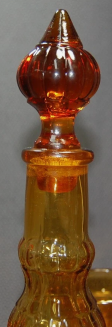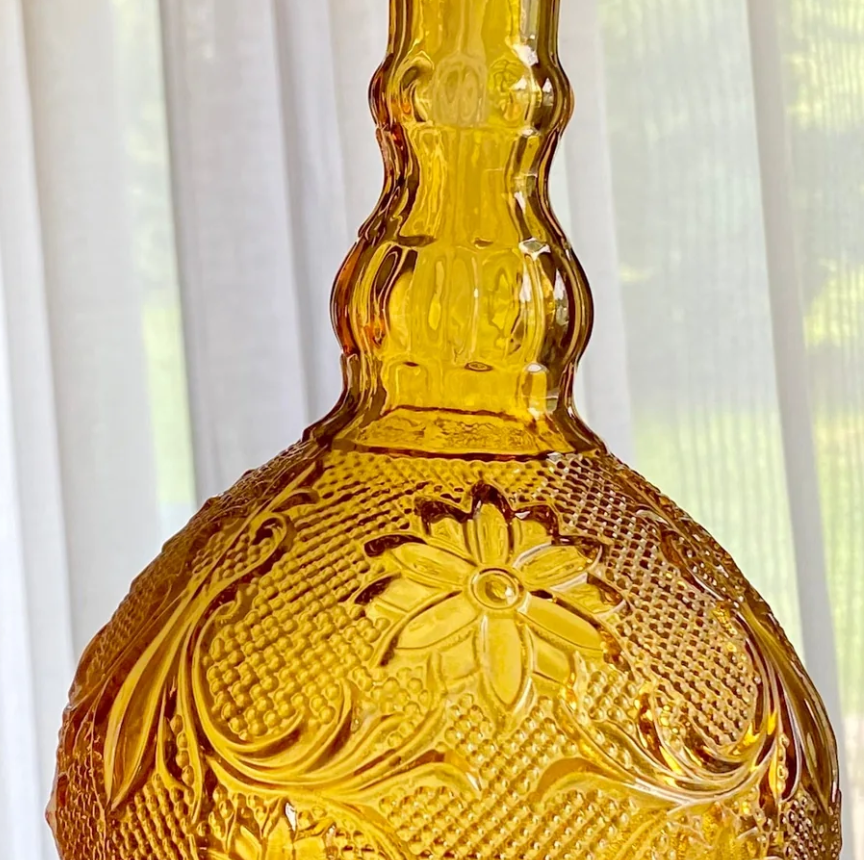 ZelleTiara Indiana Glass amber decanter set, likely from the "Sandwich" pattern line.