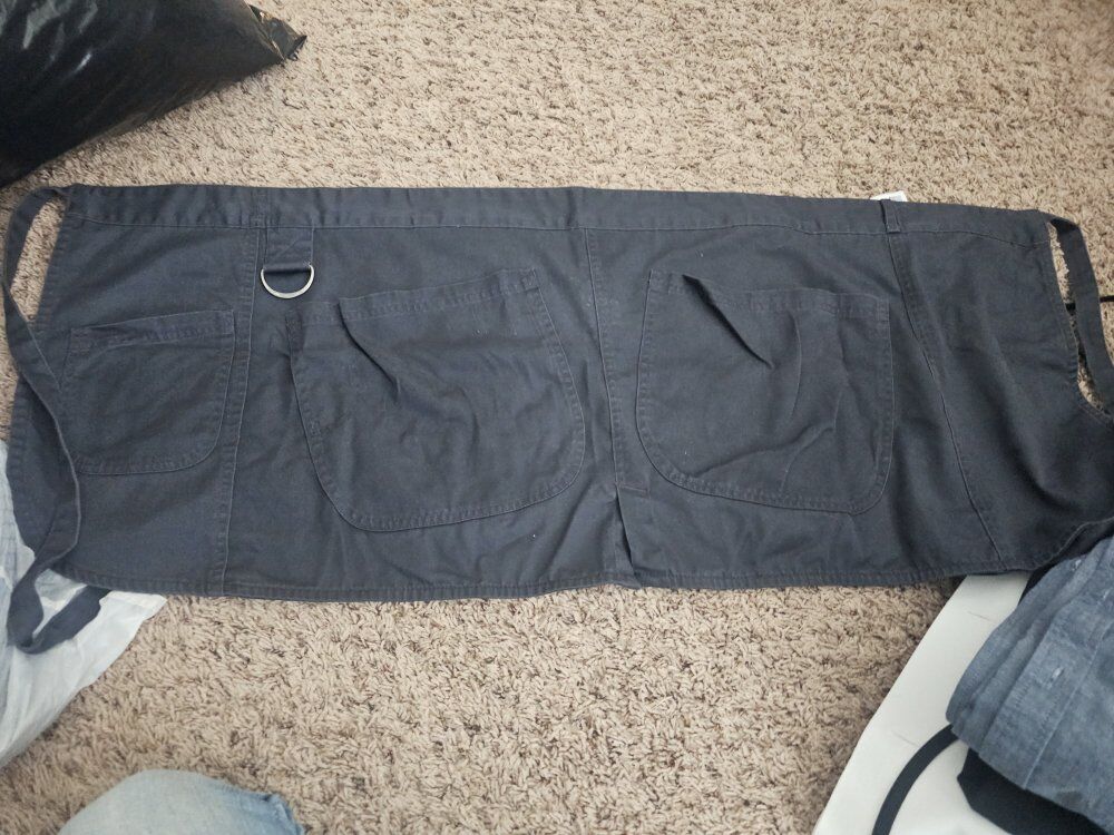 I have four grey aprons $20 each, 2 chefs jackets, need a bleaching but I've done it a million times with others and they look brand new once done. $20 each, two black aprons $10 each and 3 button up shirts for weightering or just nice shirts one small and 2 large $5 each or all for $100