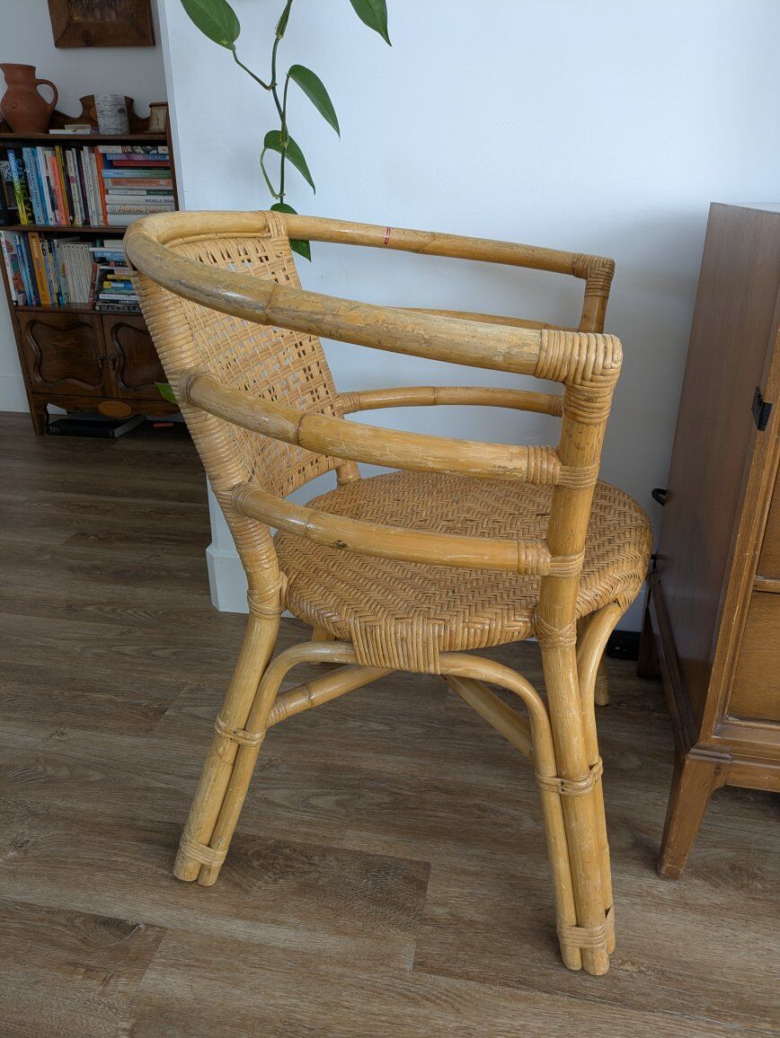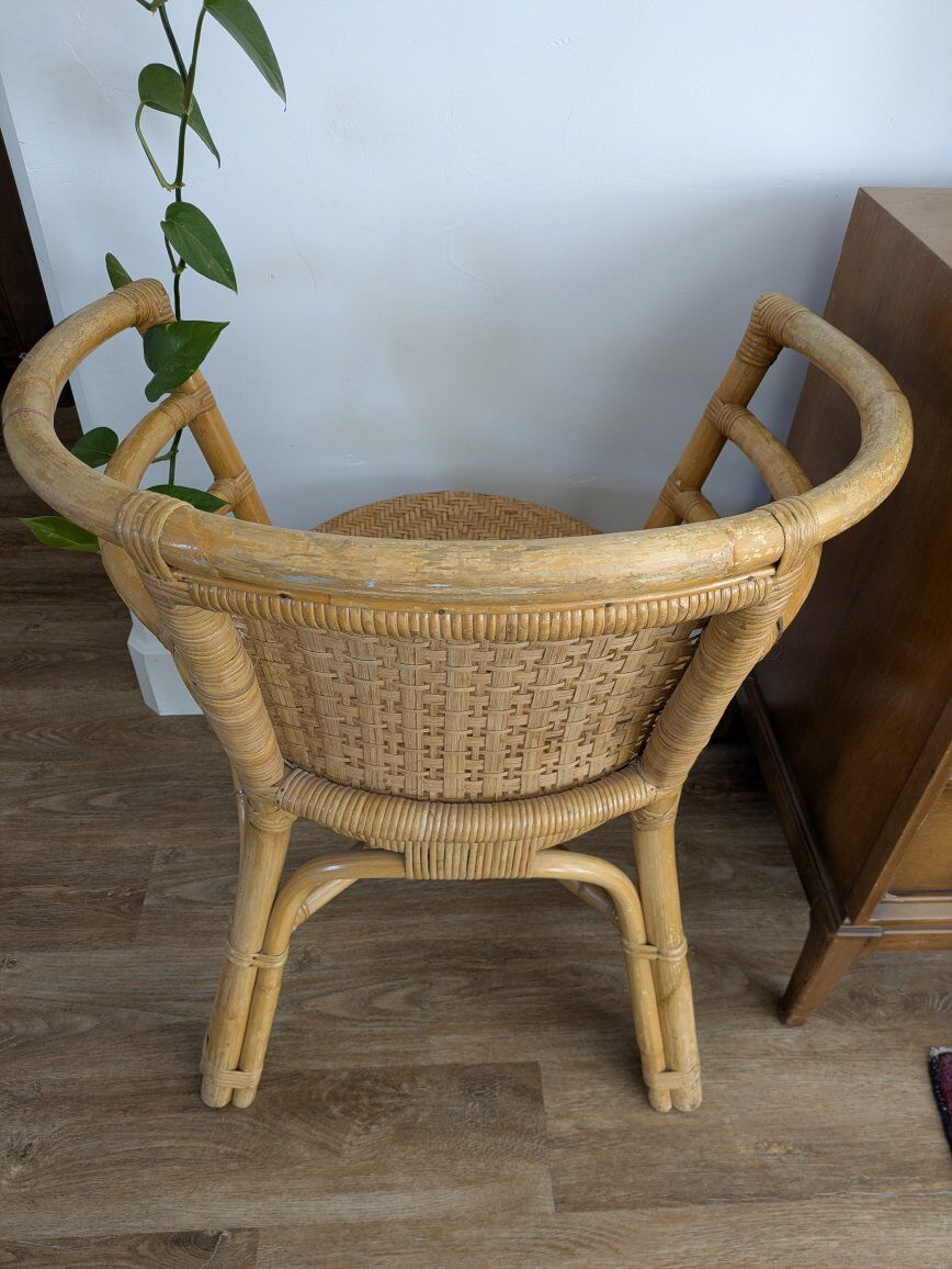 GooglePayVintage woven bamboo and rattan chair from the '70s. Has some cosmetic wear because of its ago but is structurally fine. I found this in Chicago when I lived there. Pick up in Ogden near 20th and Wall. Also posted on Facebook marketplace.