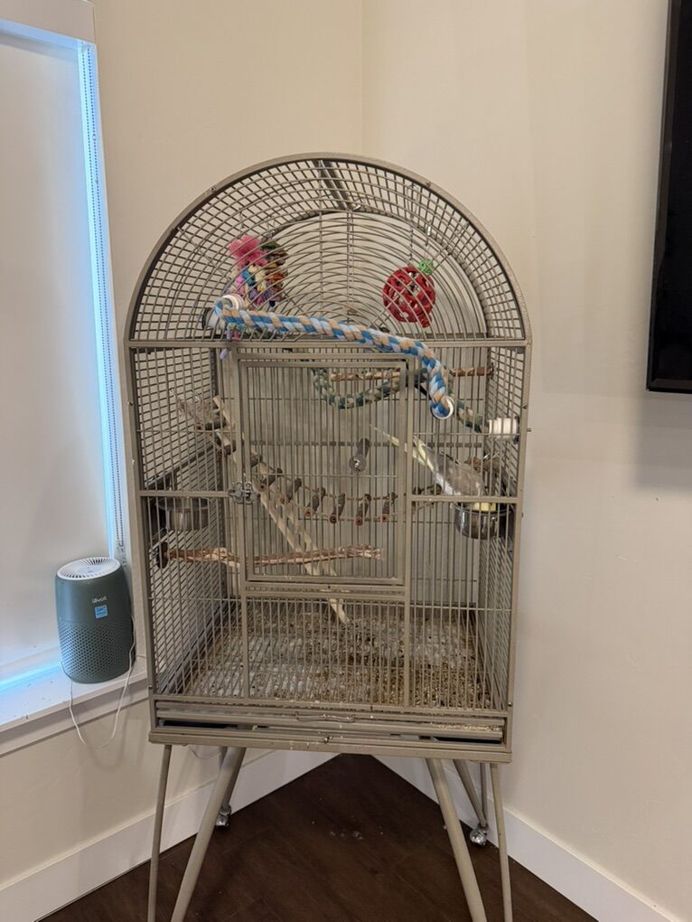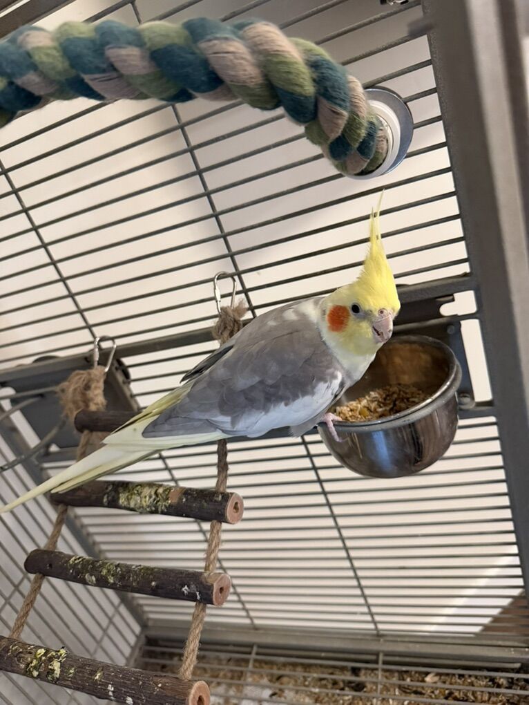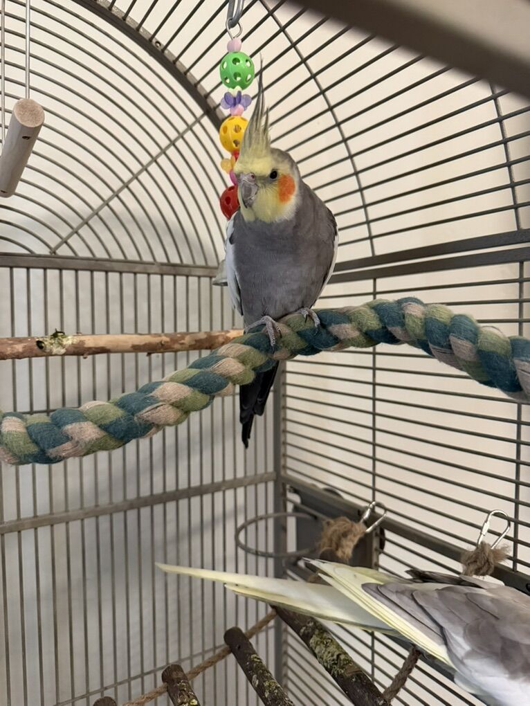 VenmoI have two male cockatiels both about a year old. Won’t sell separate. Grey one is named Bender and yellow one is Max, they’re both semi hand tamed. Bender loves to sing and mimic noises and play with his toys while Max is more quiet and calm and loves millet. They come with the cage and all the toys and perches as well as food. They enjoy hanging out in their cage and climbing on the outside of their cage. Sadly have to get rid of them as I sized down from a house and moved into an apartment. Asking 450 obo