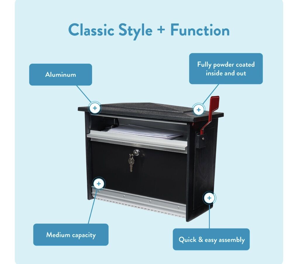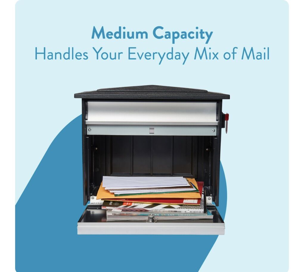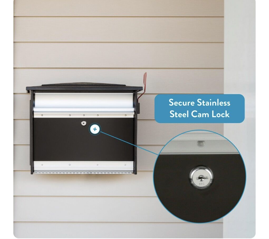 Architectural Mailboxes MailSafe™ Locking, Wall-Mounted Mailbox for Outside, Rust-Resistant Plastic & Aluminum Metal Small Mail Box with Lock and Key Drop Box, Black