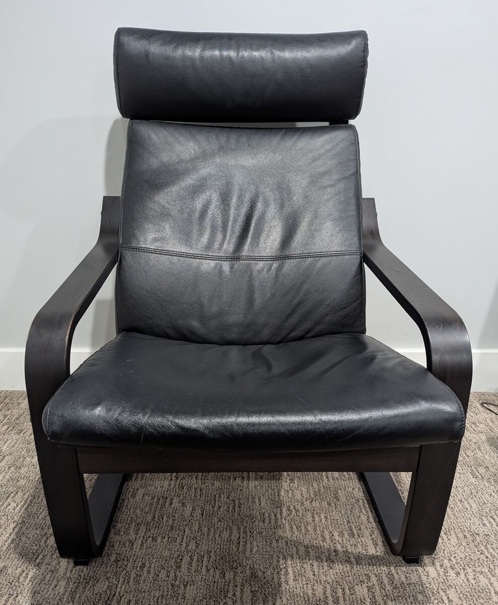 ZelleSelling two matching IKEA Poang chairs with the matching ottomans. These have the dark wood frames and black easy-clean cushions.