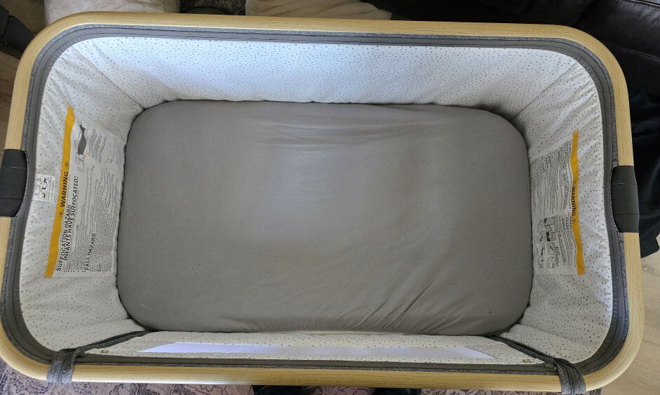 PayPalOur lightly used no stains, no damages, bassinet has many features and we've loved using it. Comes with mattress pad and sheet as well. It folds up nicely in a travel bag as well, and assembles without tools.