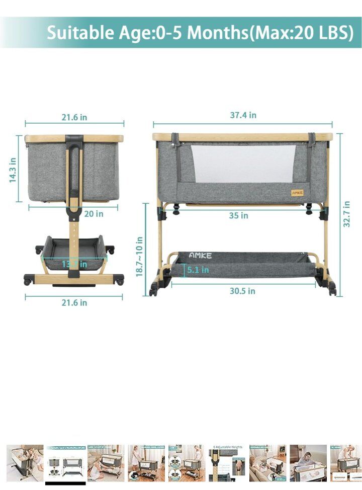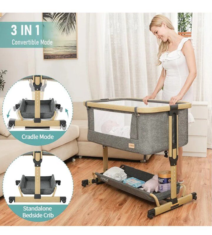 Versatile 3-in-1 Convertible Mode: Our baby bassinet is designed to meet the needs of every parent. With three convertible modes - standalone bassinet, bedside sleeper attached to the adult bed, or baby cradle - you can adjust the rails at the bottom easily to switch between modes and meet your changing needs. Adjustable Height and Angle: Our baby bedside sleeper has six height settings, ranging from 12.7 to 19.5 inches, providing versatility for use in different scenarios. It's not just for bedside use - it can also be used on sofas, beds, or other surfaces. You can adjust the angle after feeding to prevent your baby from spitting up. Ideal for Night Feeds: The AMKE baby bedside crib is perfect for night feeds. It features a zipper on the side for easy access, so you can quickly attend to your baby's needs. The mesh construction allows you to keep an eye on your little one and provides excellent ventilation. This feature is especially helpful for nursing moms or those recovering from a C-section.