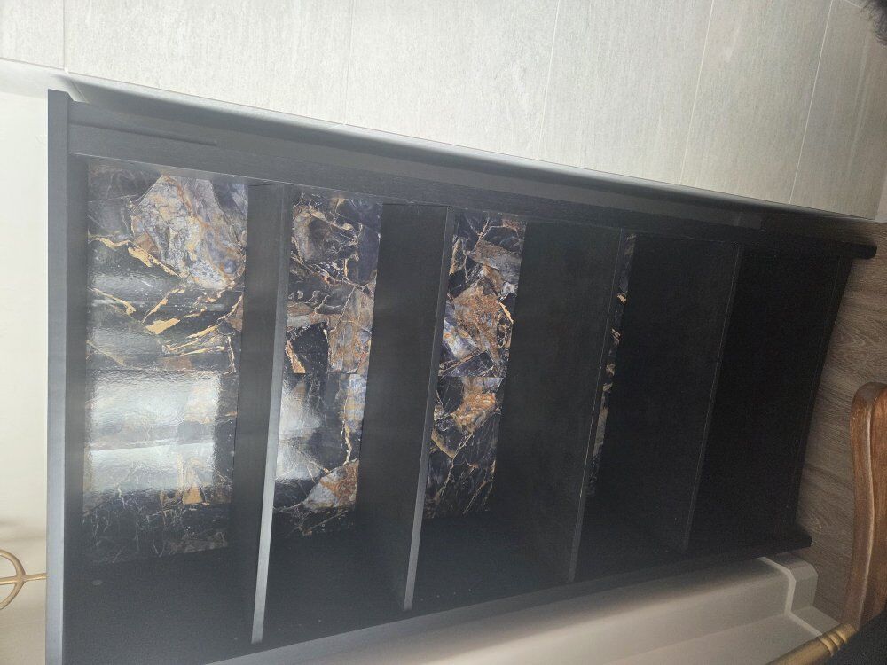 Venmo2 black bookshelves. Wallpapered the back. Great condition. Moving and they can't come. $140 each. You pick up.