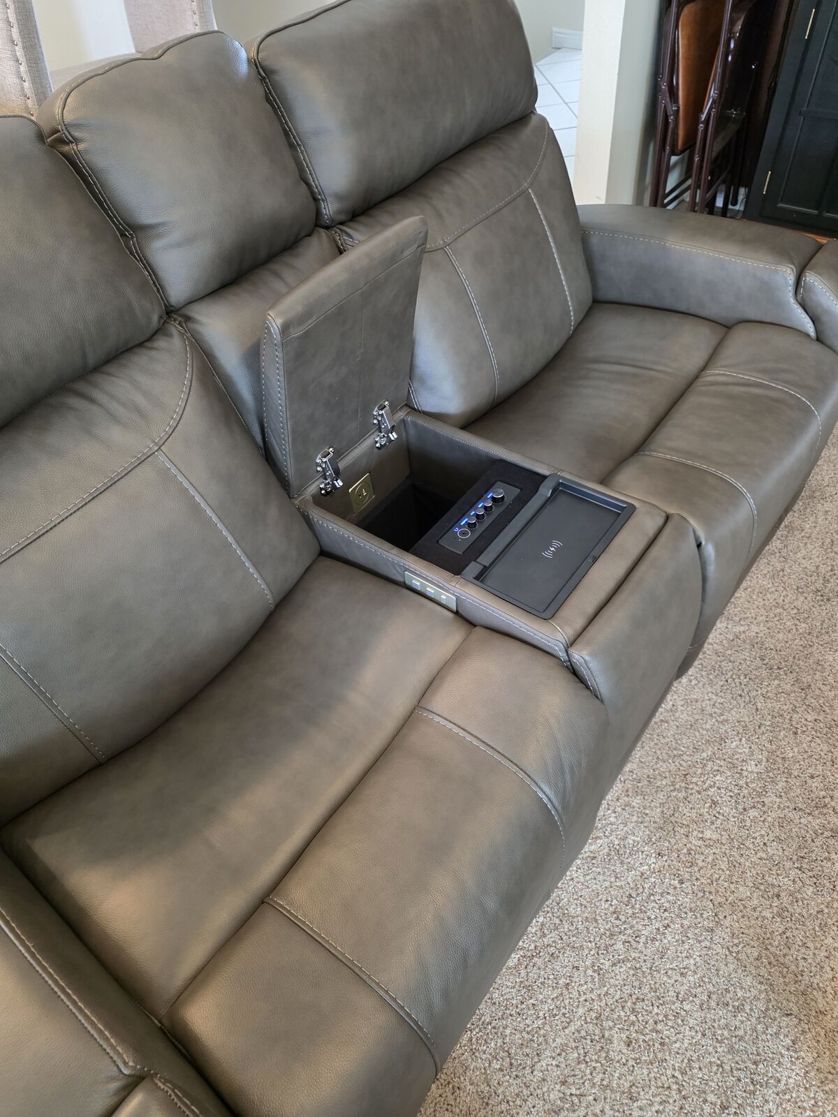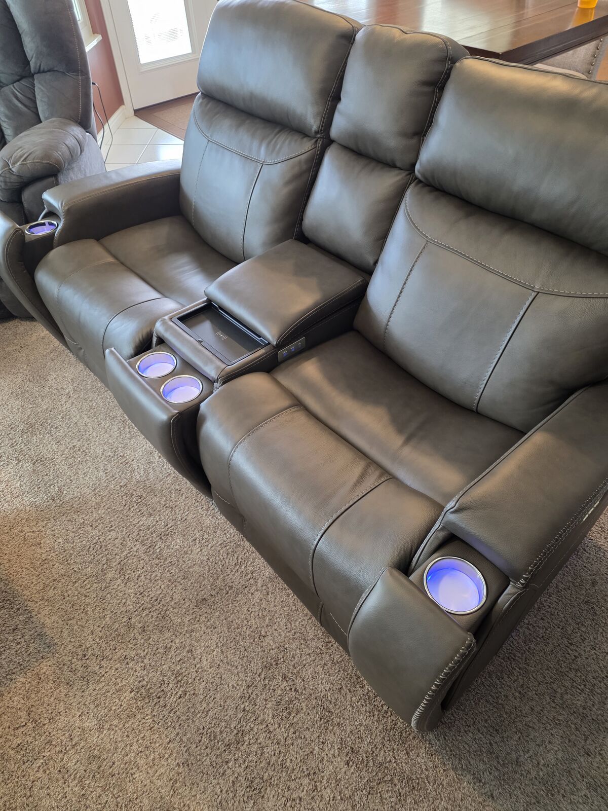 VenmoThis powered sofa was just purchased in August 2025 from Living Spaces to help us set up our home theater room. The sofa is fully functional in all ways and is in barely used condition with no marks or stains or anything on or in it. The Bluetooth Audio has speakers built in to the chairs and provides full audio control - including Vibration - which makes you feel like you are watching a movie in a DBOX seat in the theater. And even better - you having full control over how much sound and sensation you want. There is nothing at all wrong with the couch - just some health issues that are requiring us to switch to powered lift chair recliners for me and a regular recliner for her for post-back surgery and we need space and don't have anywhere else to put it the sofa. You have to come check this out with 4 sets of drink holders, RGB lighting, wireless phone charging, massage and heat controls individually in each chair, and full back, leg and lumbar control as well. We are regretfully willing to sell this for a loss (50% off of what we paid for it) to help us with our health situation which takes precidence. You will need to have 2 strong people able to carry it out to your vehicle, but other than that, it is completely assembled and ready to go and will be your ultra movie watching experience at home. You can see the Living Spaces page on it at https://www.livingspaces.com/pdp-matrix-taupe-leather-power-zero-gravity-reclining-immersive-audio-console-loveseat-with-power-headrest-power-lumbar-heat-massage-lights-cupholders-storage-usb-352258