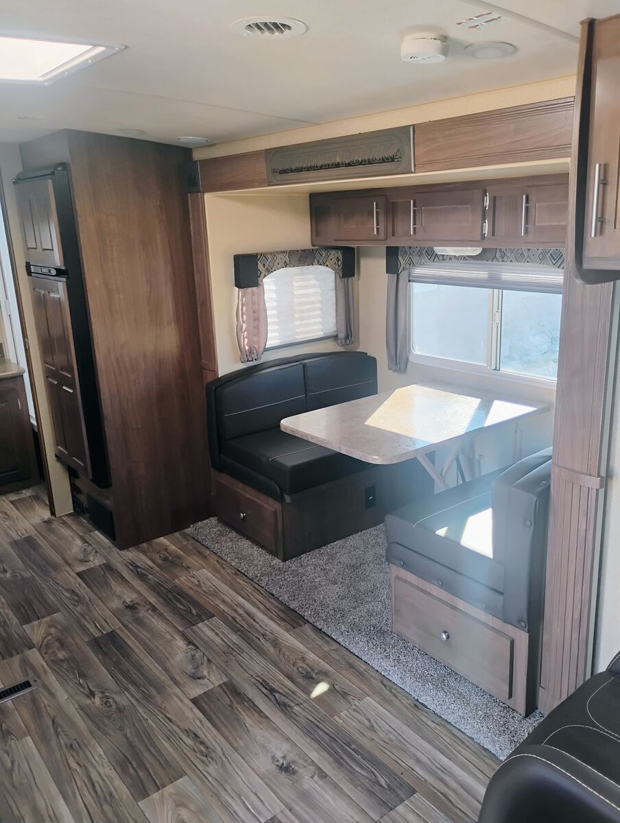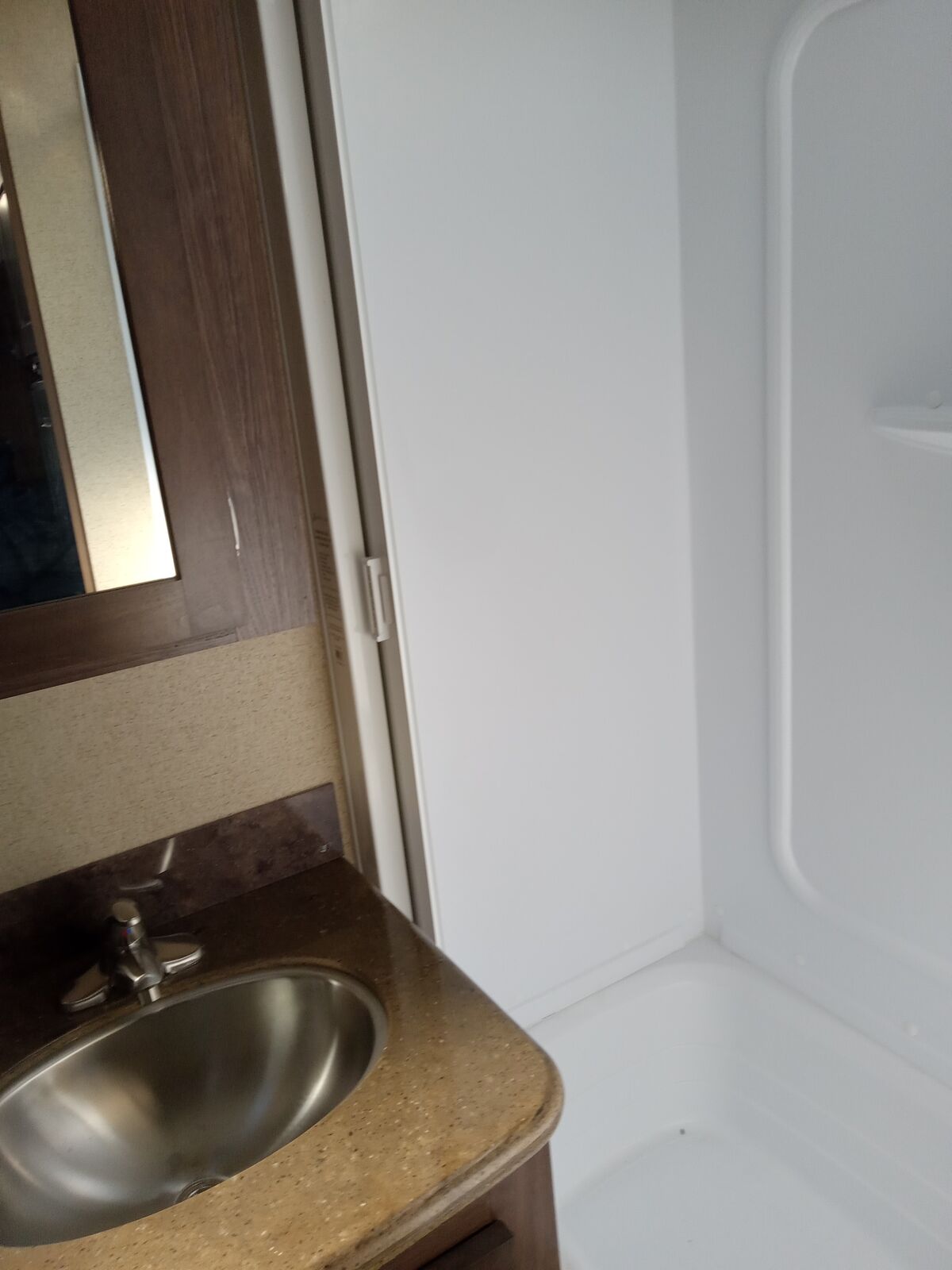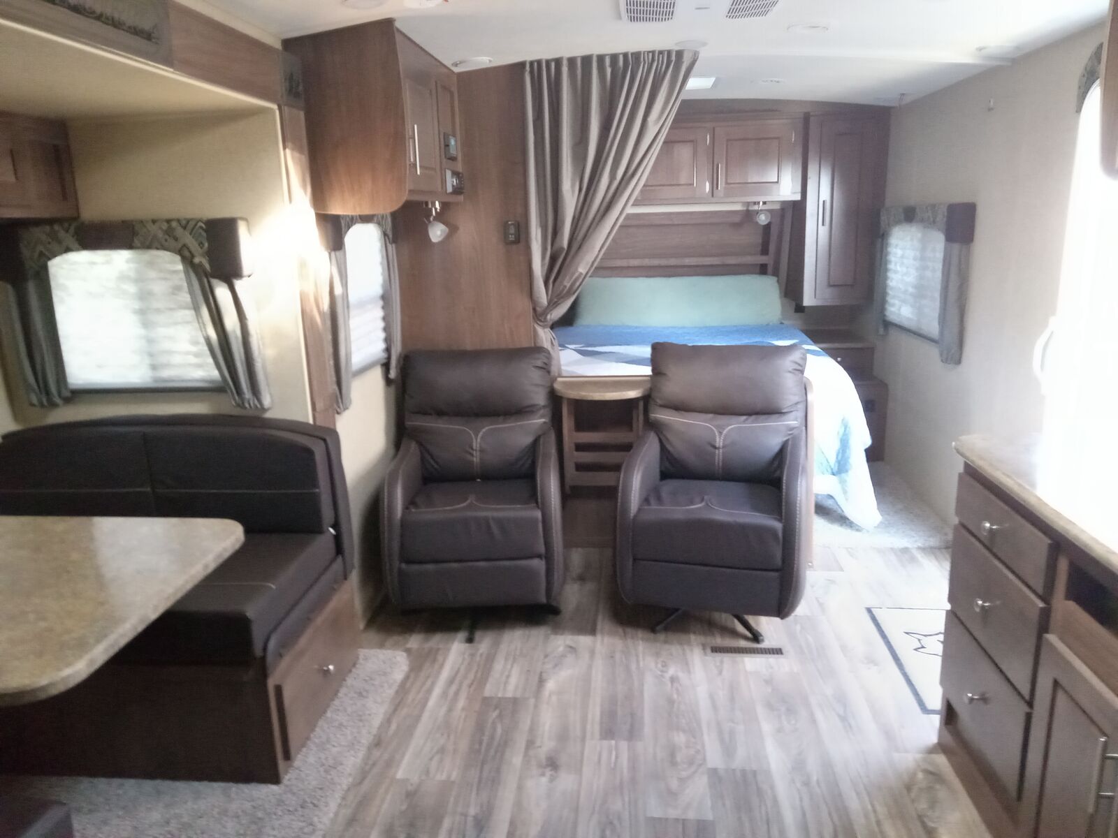 1 slide (dinette), queen bed, rear bath, and 63 gallon fresh water capacity