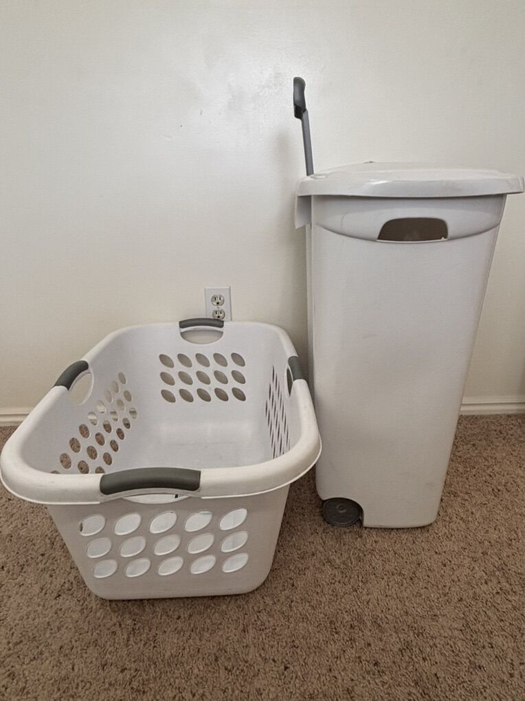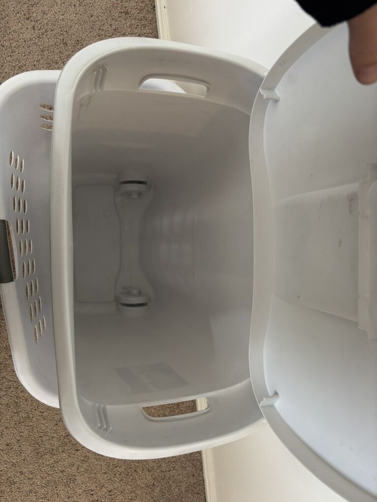 Sterilite Ultra Wheeled Laundry Hamper with Lid, Handle and Wheels for Easy Rolling of Clothes to and from the Laundry Room, Plastic Dimensions:29”H x 21” L Sterilite Large Plastic Laundry Basket with 4 Comfort Grip Handles, White Dimensions: 27” x 18” No advance payment Payment and pickup up are at the same time.