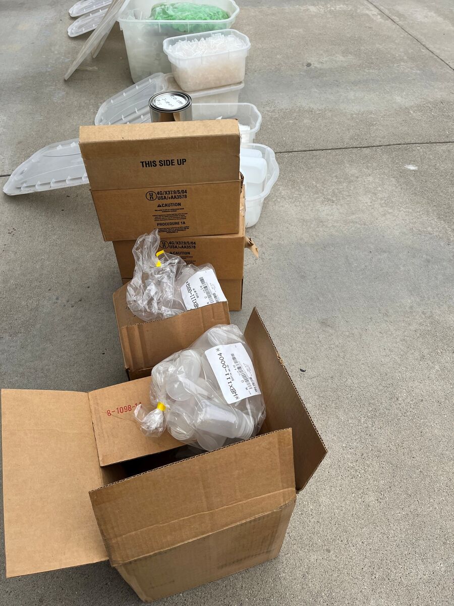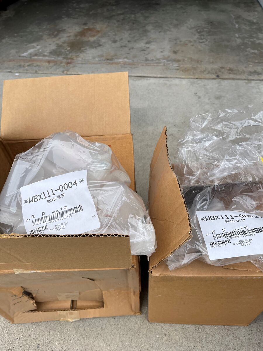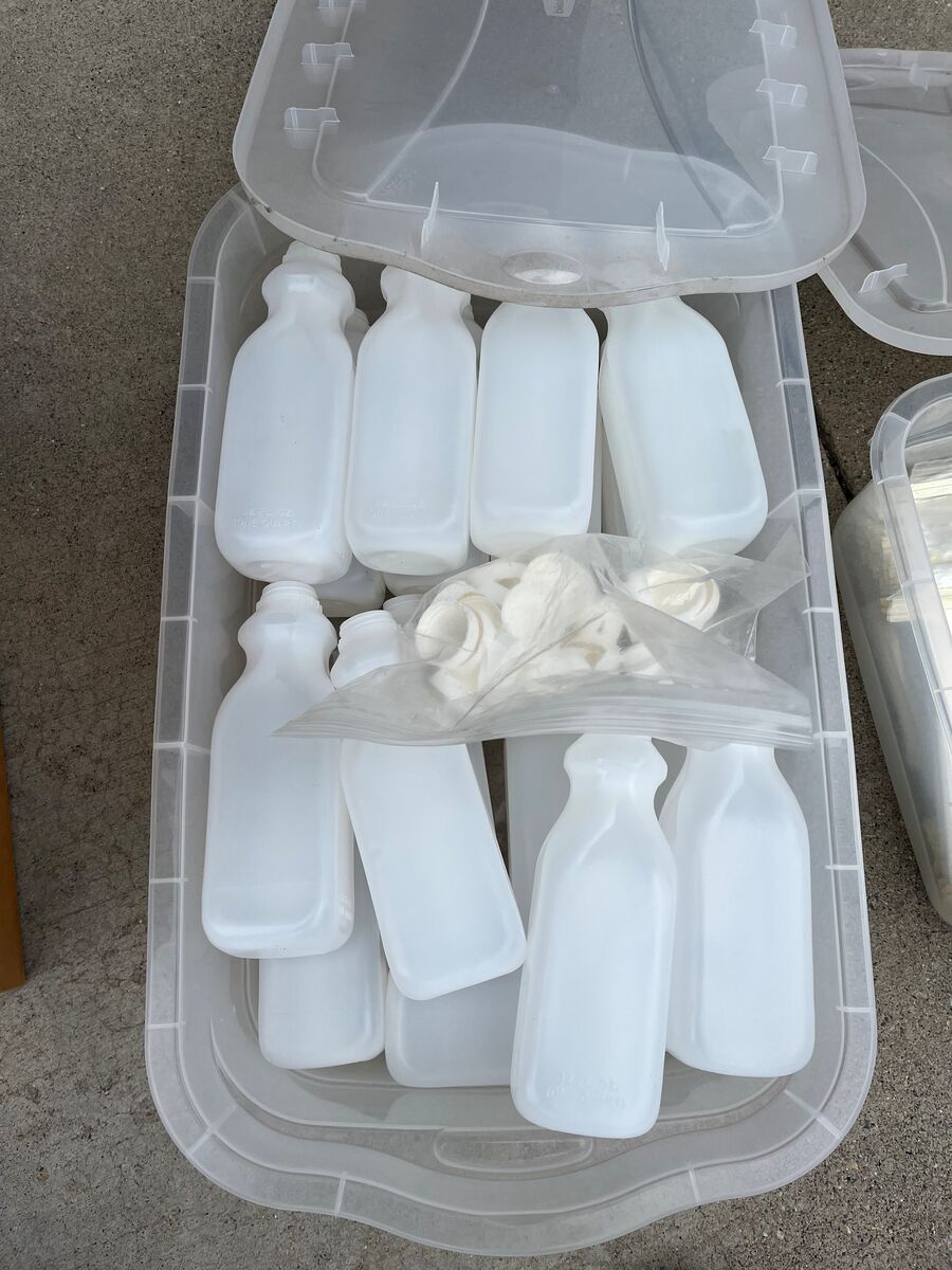 Poly bottles, various sizes, 50 ml to 1 liter $10 per tub obo.
