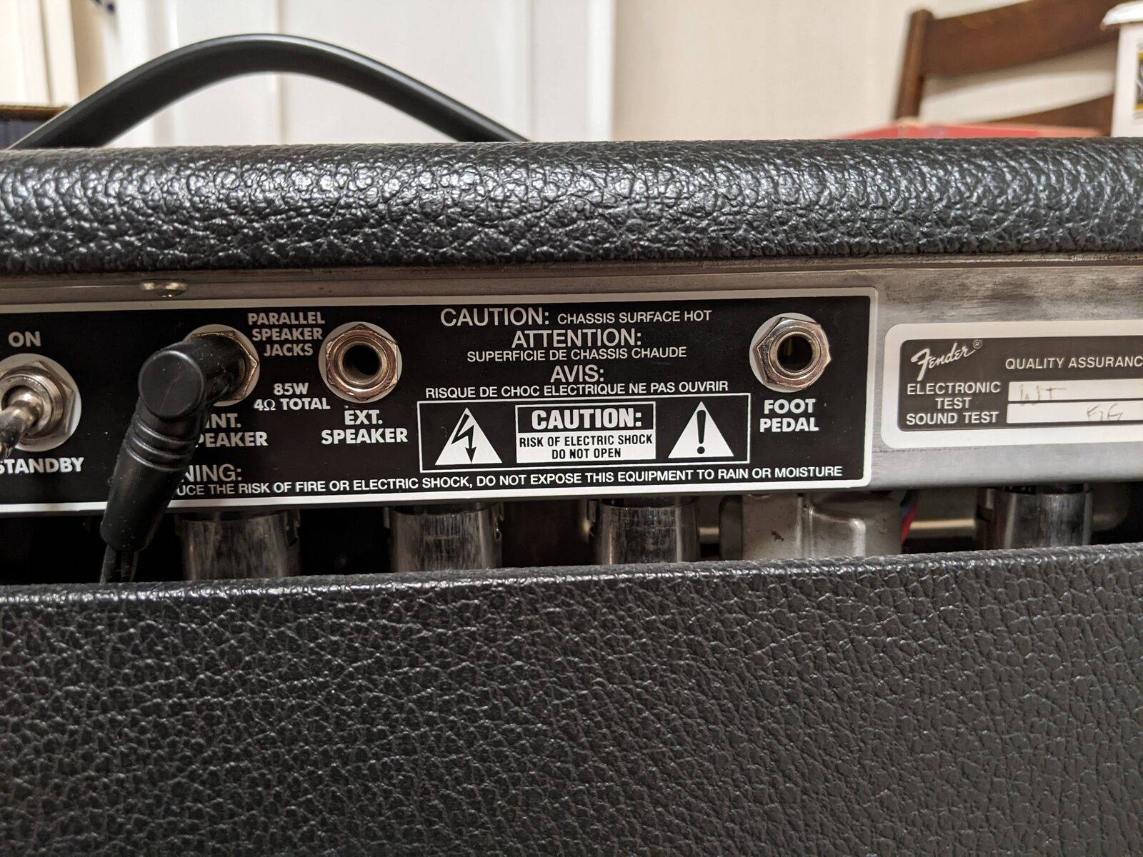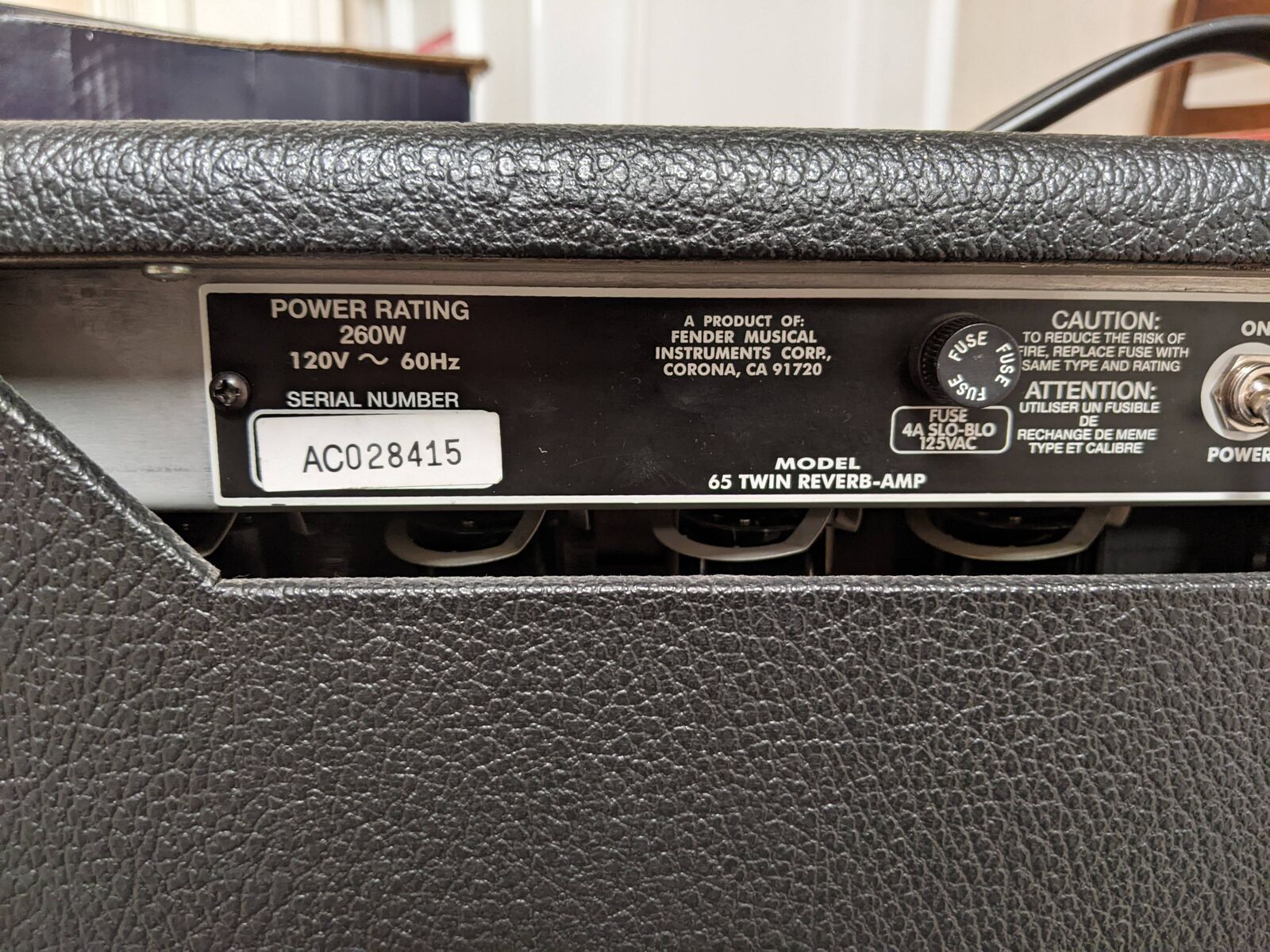 The 85-watt (at 4 ohms) reissue '65 Twin Reverb® features four 6L6 Groove Tubes® output tubes, four 12AX7 preamp tubes, two 12AT7 preamp tubes, two 12" 8-ohm Jensen® C-12K speakers, dual channels (normal and vibrato), Fender® reverb, vibrato, two-button reverb and vibrato on-off footswitch, tilt-back legs, black textured vinyl covering and silver grille cloth."