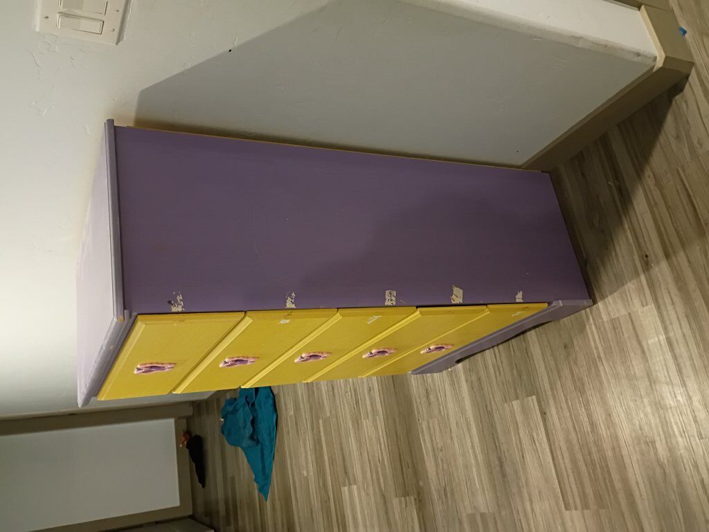 It's approximately 48 inches tall, 24 inches wide, and 16 inches deep. works fine and would look great repainted. Our girls have outgrown this style, but loved it when they were younger. We're giving it away for free.