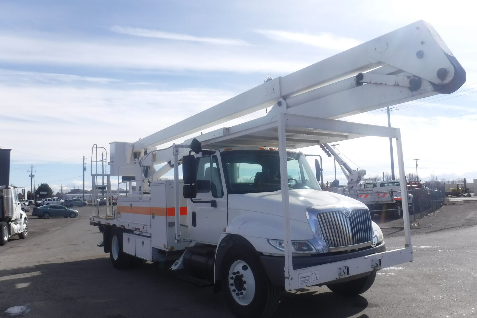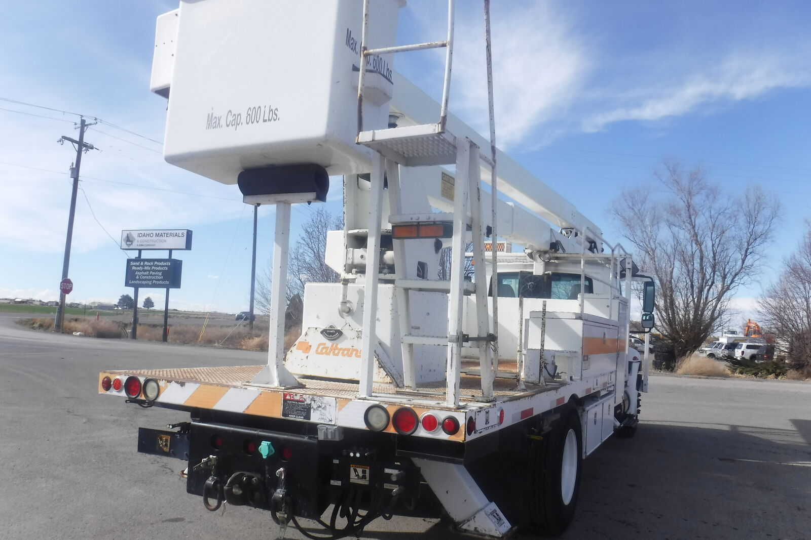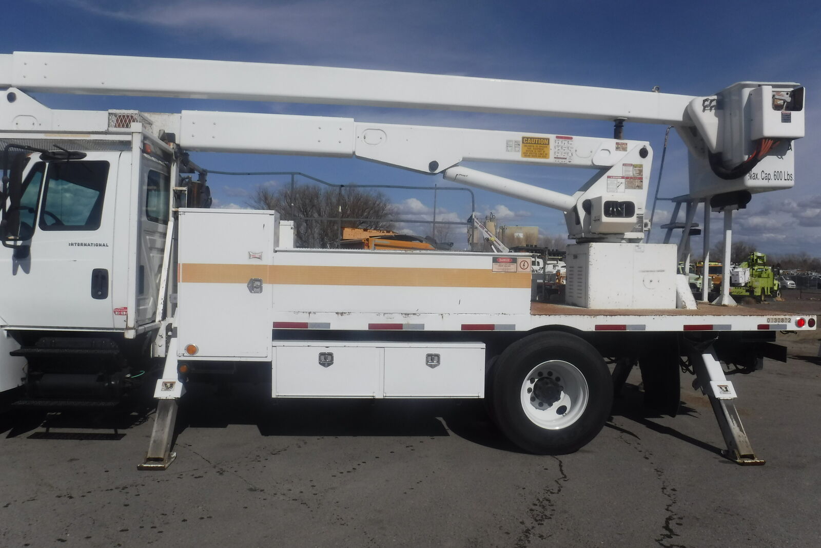 2003 IHC 4400 Bucket Truck with Lift All LAN 65-2E manlift. 72 Ft. working height and 65 Ft. to bottom of the bucket. 600 Lb. capacity double man bucket with dual 180 degree rotation. Single handle bucket controls. Insulated uppe rboom. Lower Boom insert. Continuous rotation. 4 outriggers . DT466 Diessel Allison 6 speed automatic. PS,AC, Retarder. 33K. GVW. Tires are 11R/22.5 with 80% on all. 239K miles. One owner former State DOT unit that is in near new condition. It has been well maintained. Runs, drives and operates like a new truck. Clean and ready to work. $21,900. Located in Twin Falls Id. Call 208-613-0050