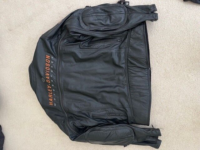 Heavy leather jacket with zip-out back and partial sleeve for a leather/protective mesh jacket for cooler riding in warm weather.
