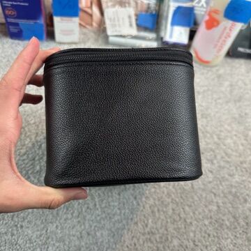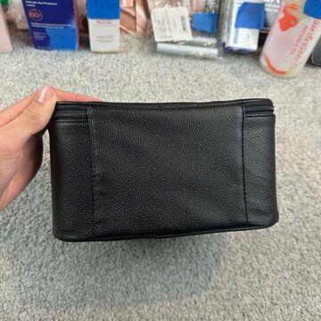VenmoProfessional black faux leather makeup vanity case. This spacious train case opens to reveal a built-in mirror and a detachable USB-powered LED light stick, perfect for illuminating your makeup application. The interior features adjustable dividers to organize your cosmetics and brushes, along with a zippered pocket for smaller items. A convenient handle on top allows for easy transport. Ideal for travel, professional makeup artists, or everyday organization at home.
