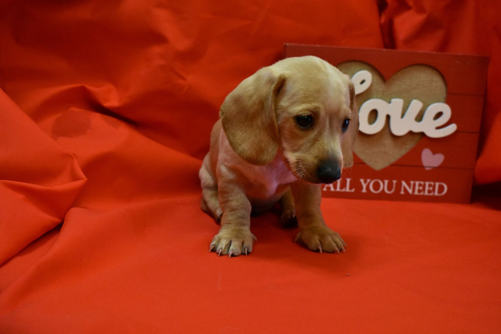 PayPalMEET THE BABIES! Born Jan 2, and ready to Feb 27! PUREBREED not AKC Reg. Mom and Dad here at home with babies. 3 girls and 2 boys. First shots, dewormed, and chipped for you! Seldom missing the puppy pads .. still learning! $200 holds your puppy until pick up. Visit anytime. We also offer facetime video daily with your baby following deposit. Born into home with children and a non related Dachshund. All social, and eating wel. RED – SOLD YELLOW—English Cream Male. Truly Boss Dog! Adventurous $1300 TAN – (SOLD) BLACK—Black and tan female. Quieter and mellow. Loves belly rubs. $1000 WHITE – (SOLD) Last pic is mom and dad!!