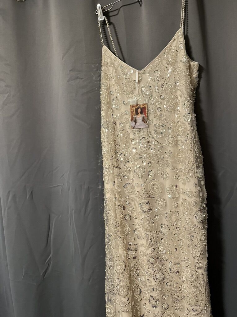 VenmoMythersea self-portrait Beaded Sequin Floral Sheath Dress Silver Size 10 Long