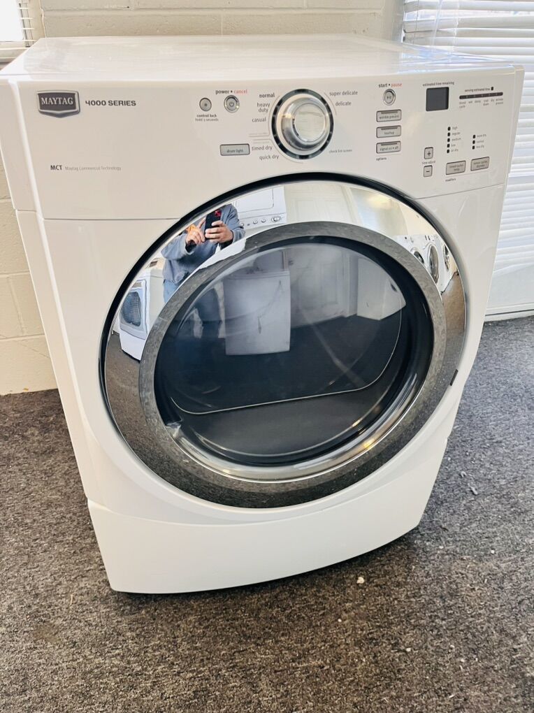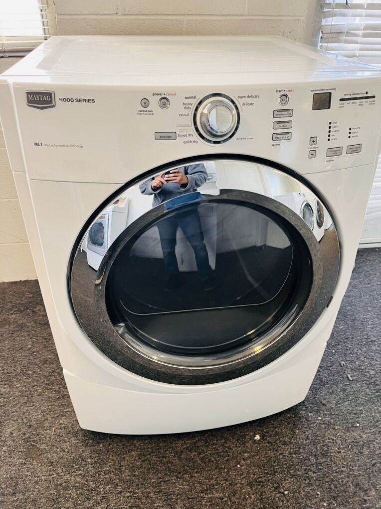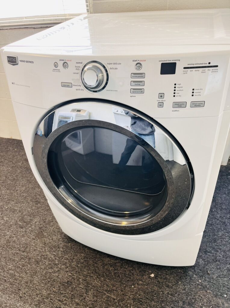Maytag 4000 series electric dryer in excellent condition and very clean with steam refresh option to remove wrinkles and freshen up your load with steam “optional”. It’s 27” wide and can be stacked on most front load washing machines. Only $200 I can deliver and install for a little extra. Call 8015403075