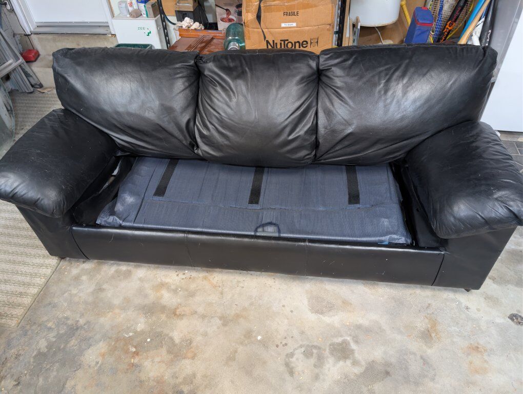 VenmoThis couch is in good shape, but one cushion has a tear near the back, you don't see it when the couch is put together. It has a pull out bed which, all things considered, is comfortable as far as fold out beds go.