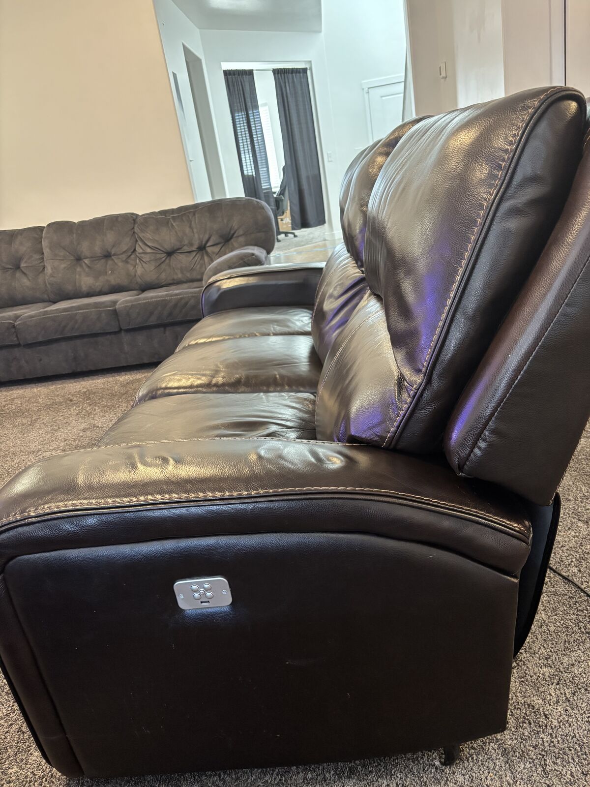 VenmoUsed leather couch. In good condition. One sides electric motor is broken, but both seats recline. Very comfortable.