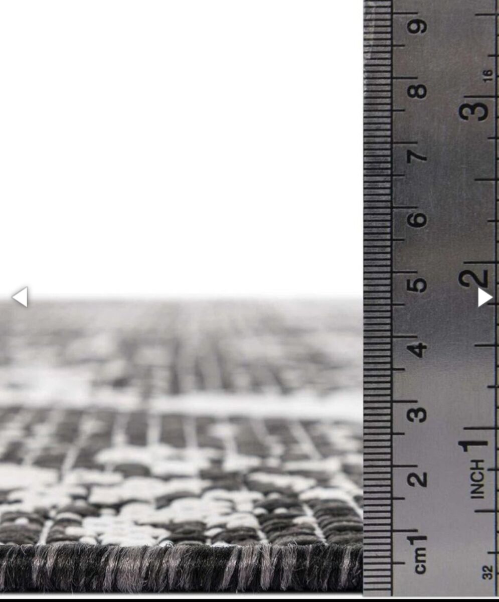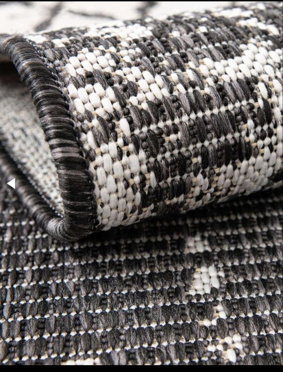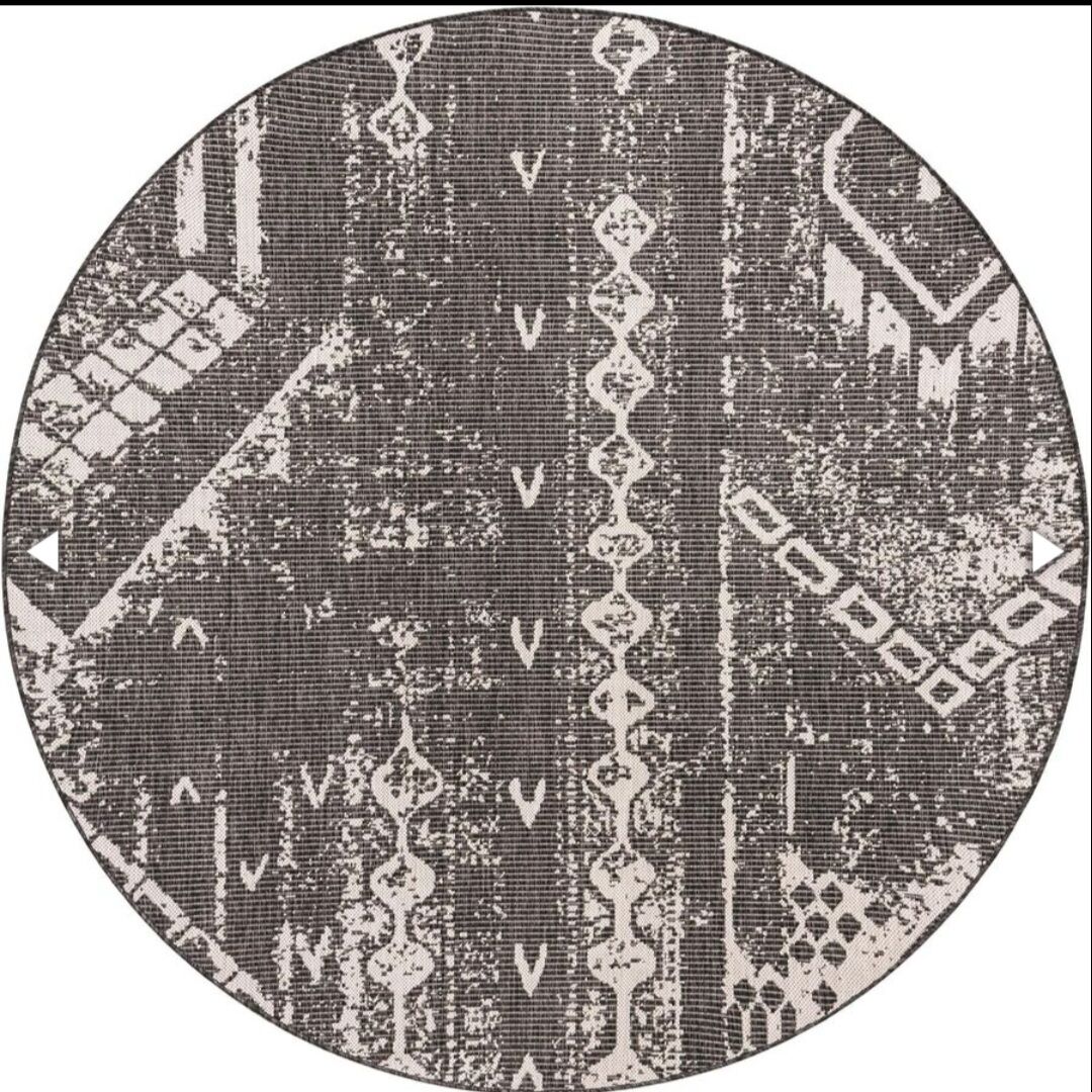 PayPalNEW Unique Loom Outdoor Bohemian Collection Area Rug Round. Measure 6'1" and the color is Gray/Ivory. 100% polypropylene. Draper.