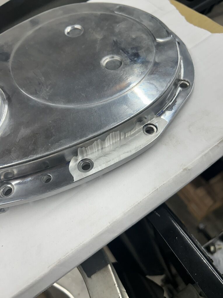 Summit racing aluminum timing cover . I had to modify the side of the timing cover with an end mill for a timing pointer . Was used for assembly and never ran was $45 from summit does not come with gaskets
