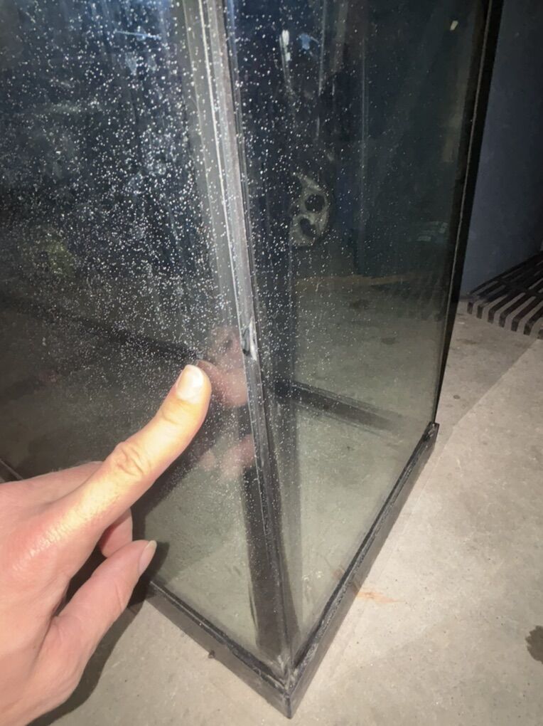 VenmoSelling because I won’t need it. Came with a used 220, was used as a sump for the 220. I will be doing a custom sump instead. It has one minor glass chip on the center corner, but this won’t affect anything because it’s a very shallow chip, and it’s on the outside, the tank does still hold water. I will water test again for you if it makes you feel safer. I think that’s white paint overspray in the picture with my finger, it can be removed with a razor blade easily. Either it came with black silicone, or someone resealed it with some, looks really nice either way. I was unable to find any brand to associate with it.