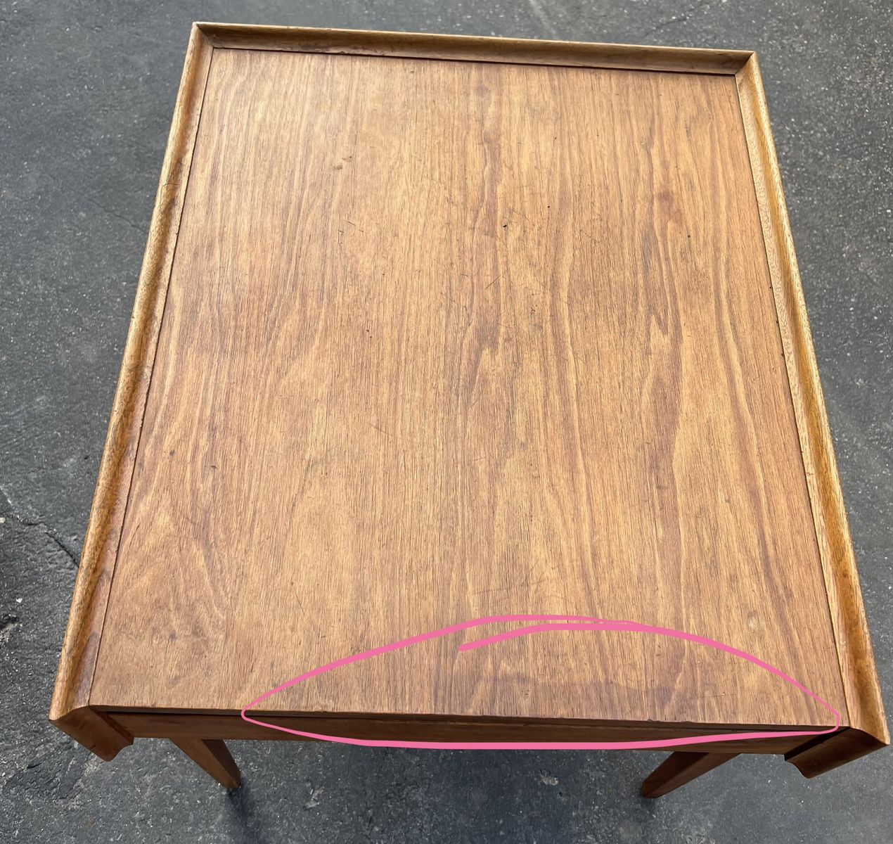 Mid-Century Modern walnut Esprit side table or nightstand designed by Merton L. Gershun for Dillingham. It’s in good condition, but you may want to refinish it as there are some scratches, blemish and wear to the finish. It was hard to capture all the scratches in the light. Please try and zoom into all photos. No damage structurally, just scratches and wear.