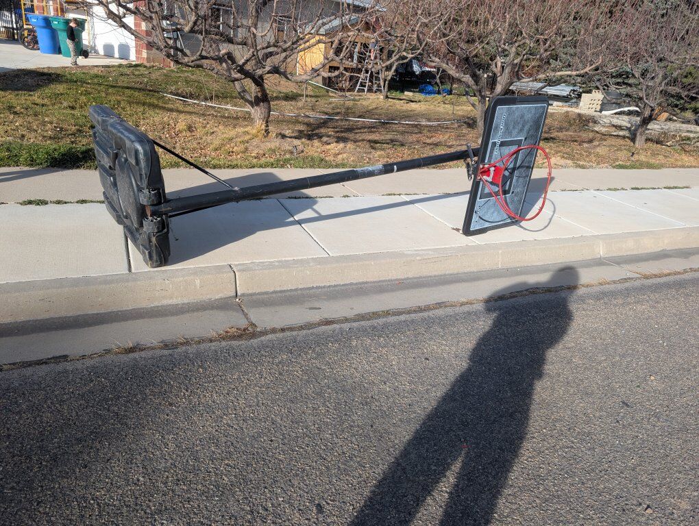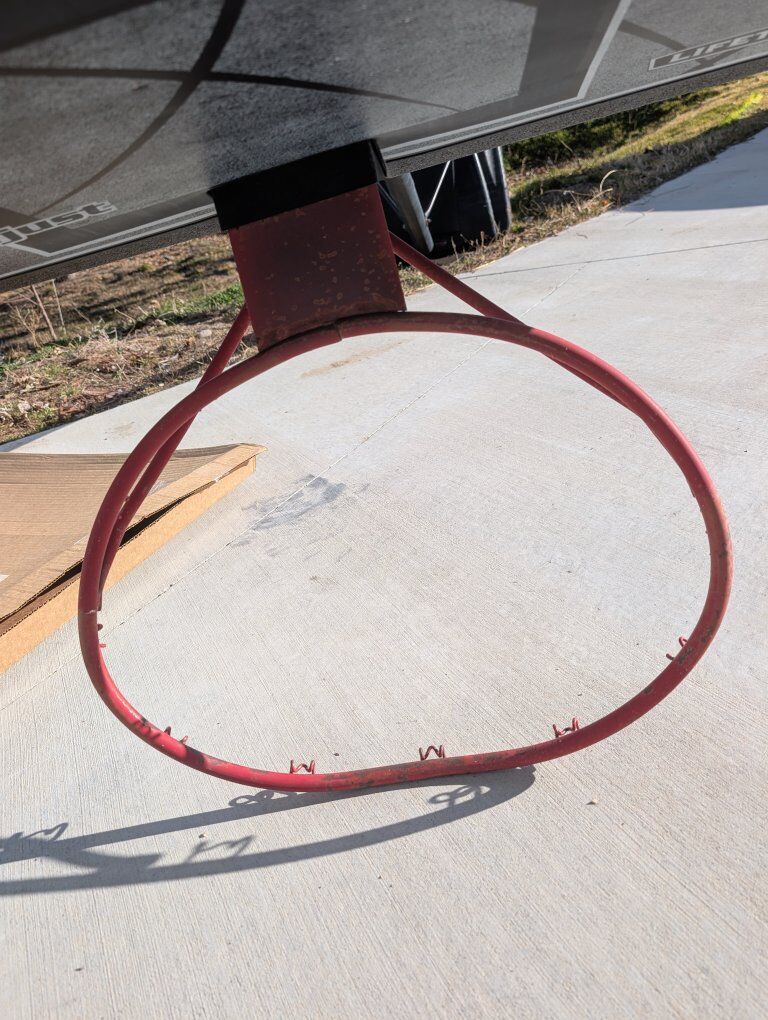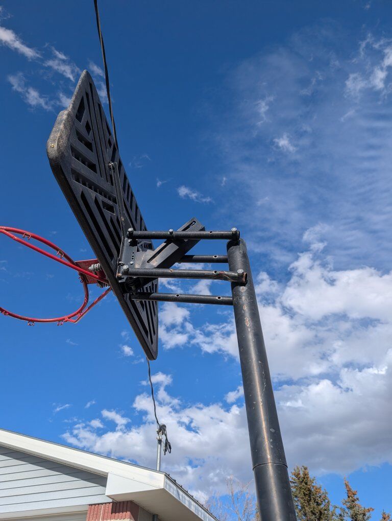 adjustable height hoop. seen better days but could still be put to use, just make sure it doesn't fall over!