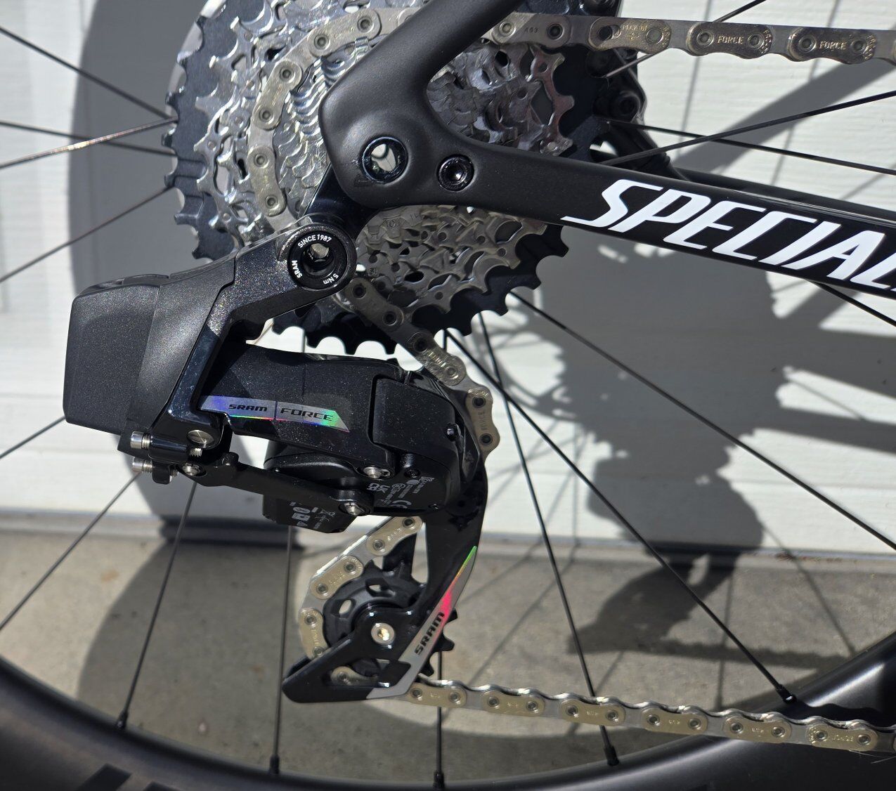 S-Works 12R Fact carbon frameset SRAM Force eTap AXS wireless drivetrain & hydraulic disc brakes Roval Rapide CL II carbon wheelset Roval Rapide integrated carbon cockpit Power Pro 3D-printed saddle