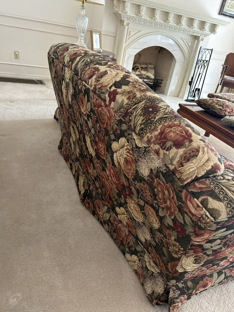 Venmo7’ Sofa, like new, no wear Beautiful floral Tapestry, no wear. Also available 5’ matching Loveseat and Ottoman