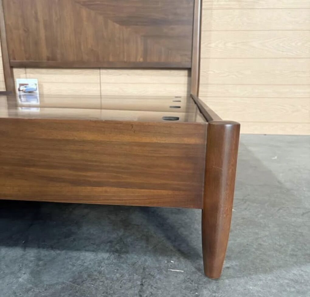 The Marina Del Rey Bedroom Collection features all the quintessential features of this ever-popular design aesthetic. Constructed of hardwood solids and walnut veneers, this bed features a unique split veneer pattern on the panel headboard and cylinder tapered legs that are the signature mark of mid-century design. Heavy-duty deck boards support your mattress without the need of a box spring – showing off even more of the striking headboard design. Marina Del Ray adds sophisticated funk to your bedroom.