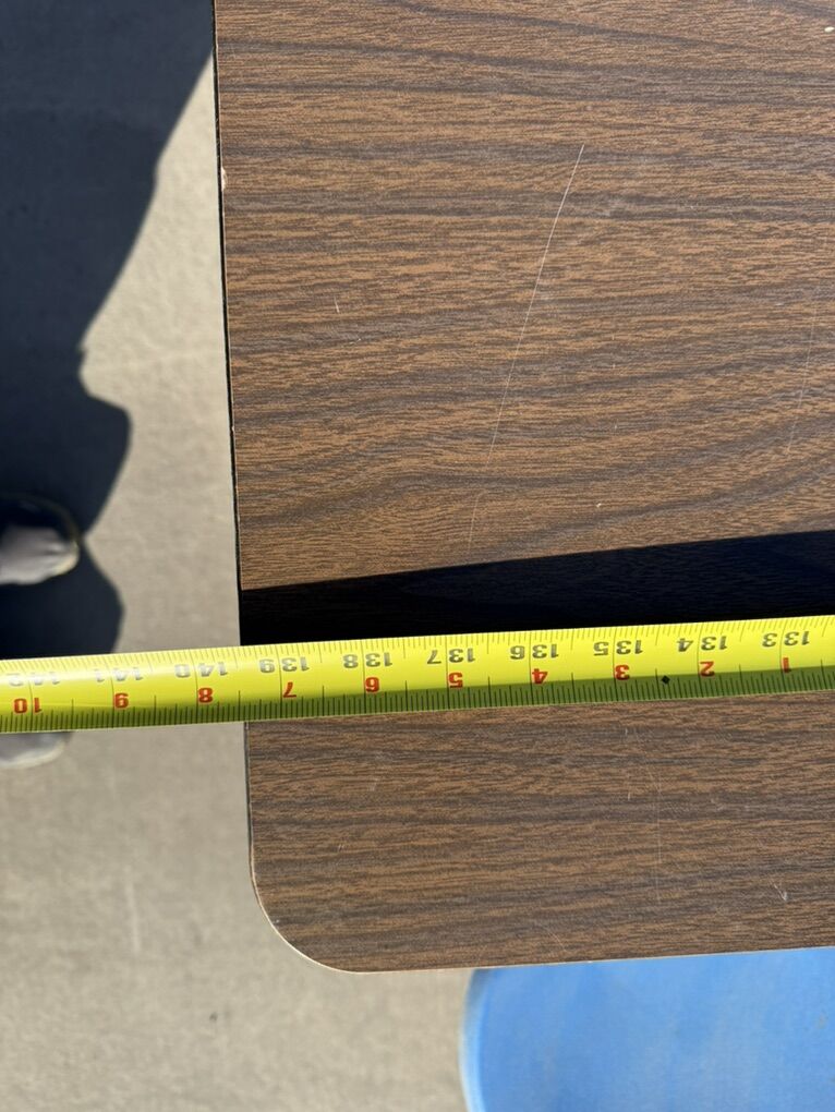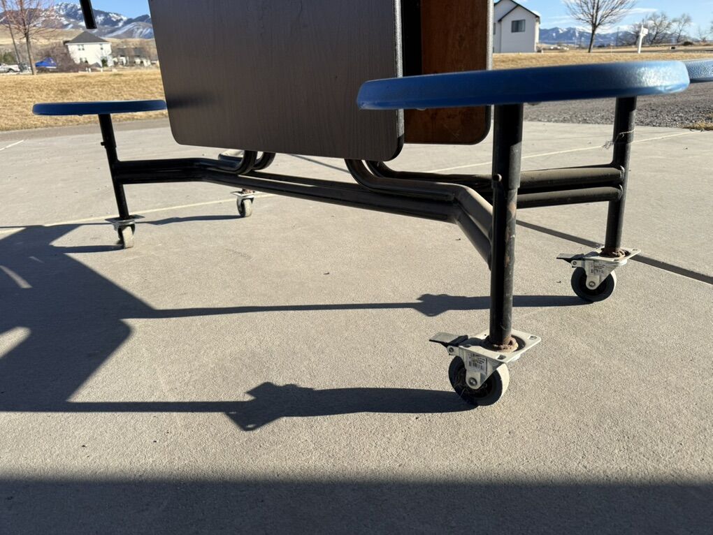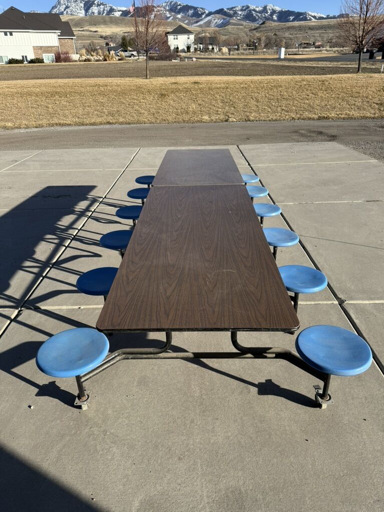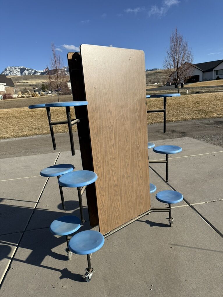 ApplePayThis is a folding school lunch table in great condition. The dimensions are all in the pictures and can easily be moved around and stored. Just not using it anymore. It has been kept in our garage so just a bit dusty but everything works great.