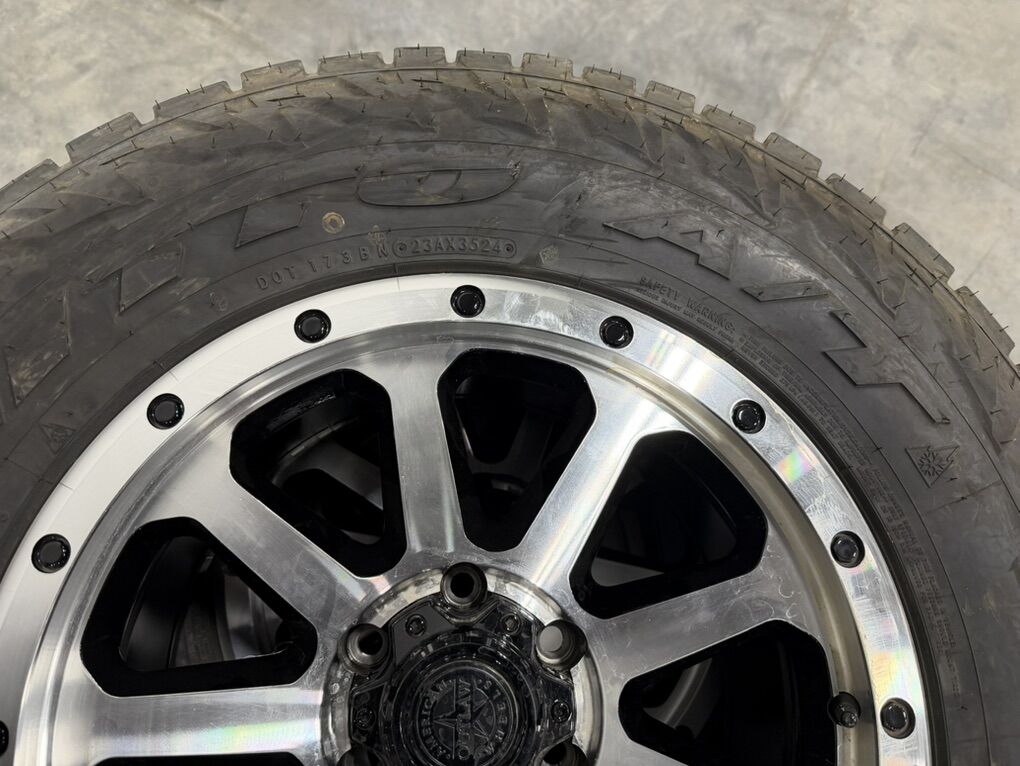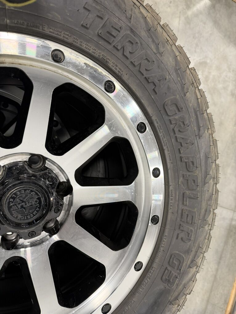 ApplePayI have a set of 4 18 in terra grappler g3 tires on American outlaw 18 in Rims. These came off of a tundra 6/5.5 pattern thread on them is still 90 percent. Best offer