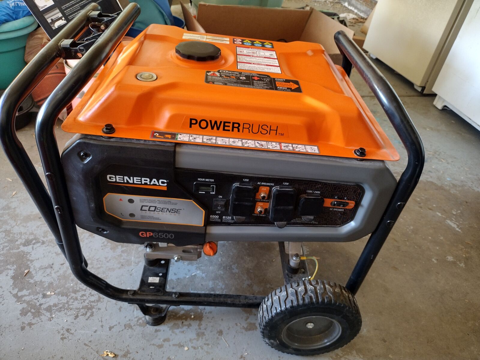 Generac generator GP 6500 power Rush only 33 hours on it. Great for camping or power outages. I bought it 10 months ago and only used it on a few camping trips.