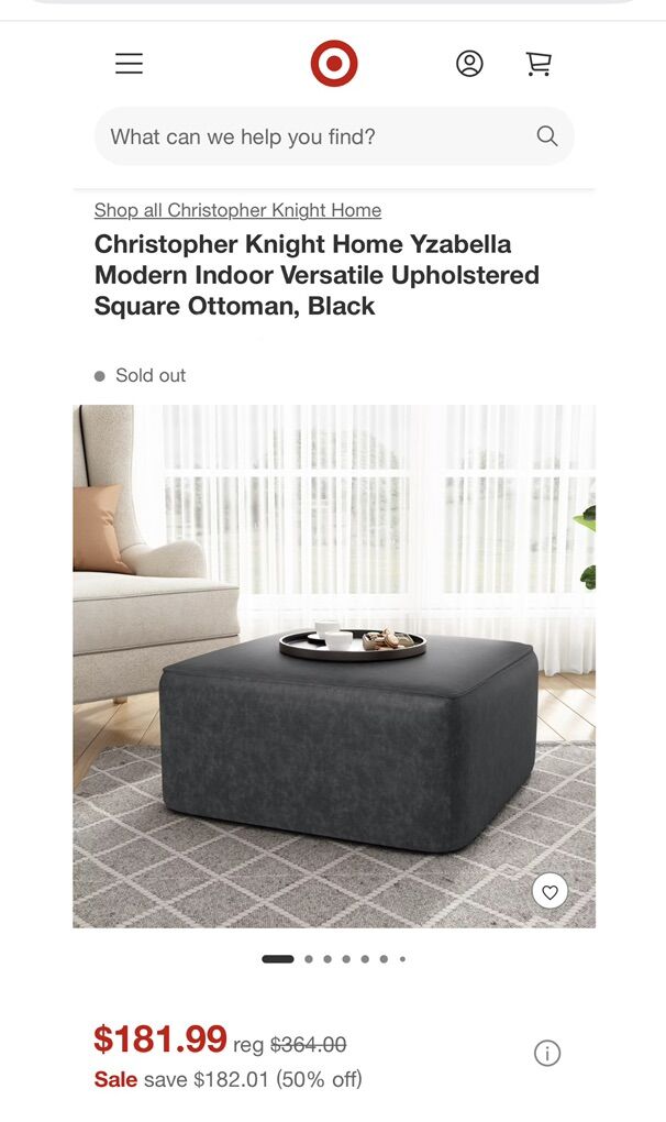 PayPalChristopher Knight Home Yzabella Modern Faux Leather Square Ottoman charcoal ret$364