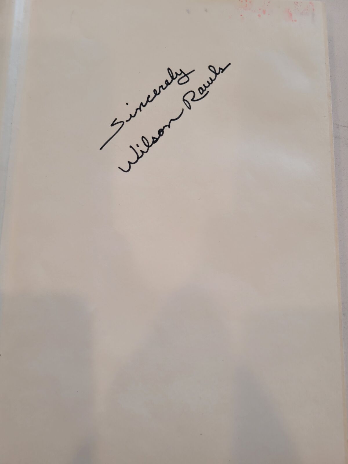 My grandmother worked at Desert Book in the 1970's and she had Wilson Rawls sign it.