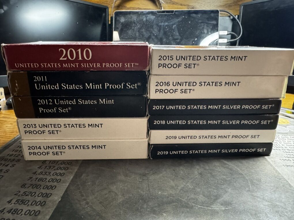 This is a huge silver and clad collection of mint and proof sets. Mint sets go back to 1959 and proof sets go back to 1955. It is not a complete set but it is a large set. I priced them all according to eBay prices so please do not try and lowball me on them. There is over $5500 conservatively. Not breaking up the collection at this time. I am however willing to negotiate a price that’s good for both of us. Trades are always considered for gold, silver, graded coins, old US Currency, or key date coins.